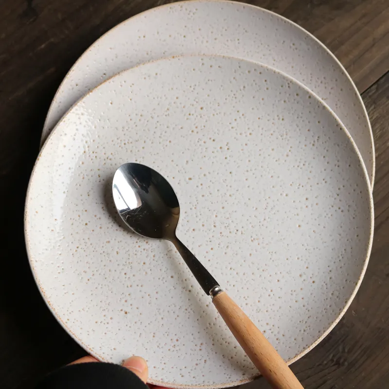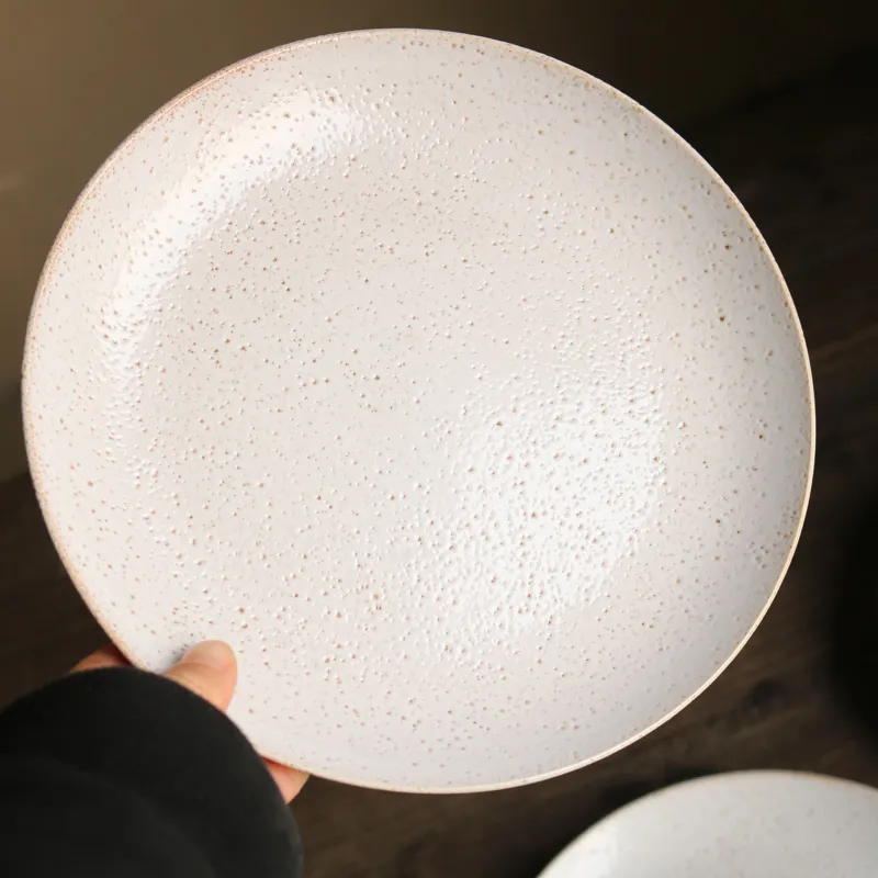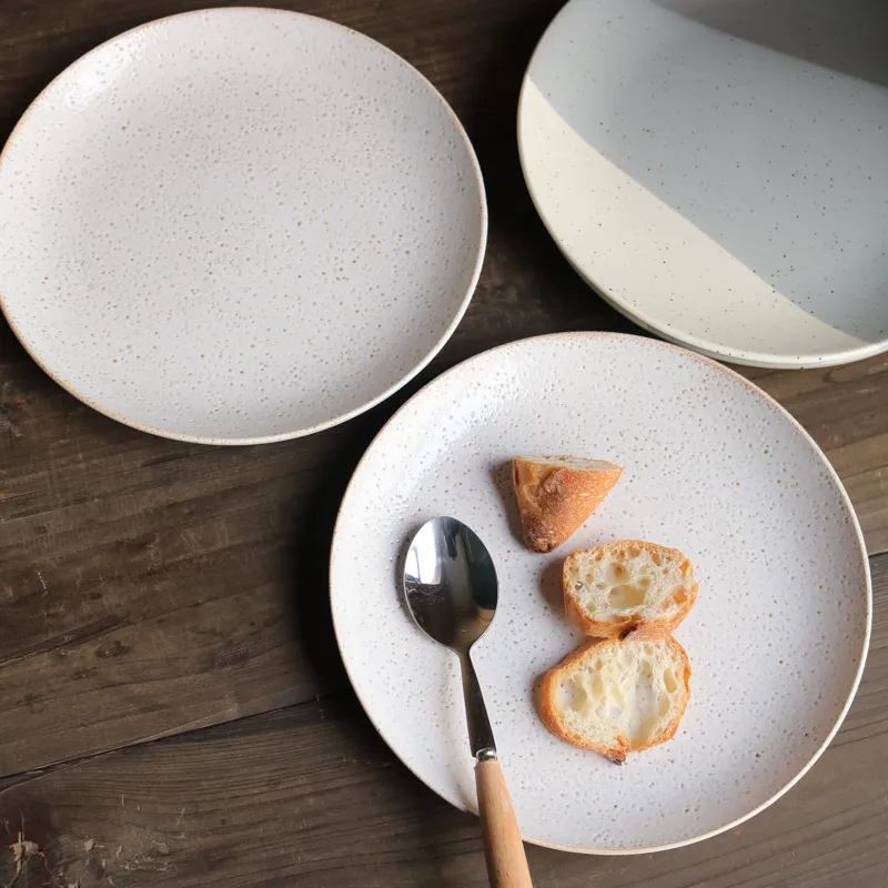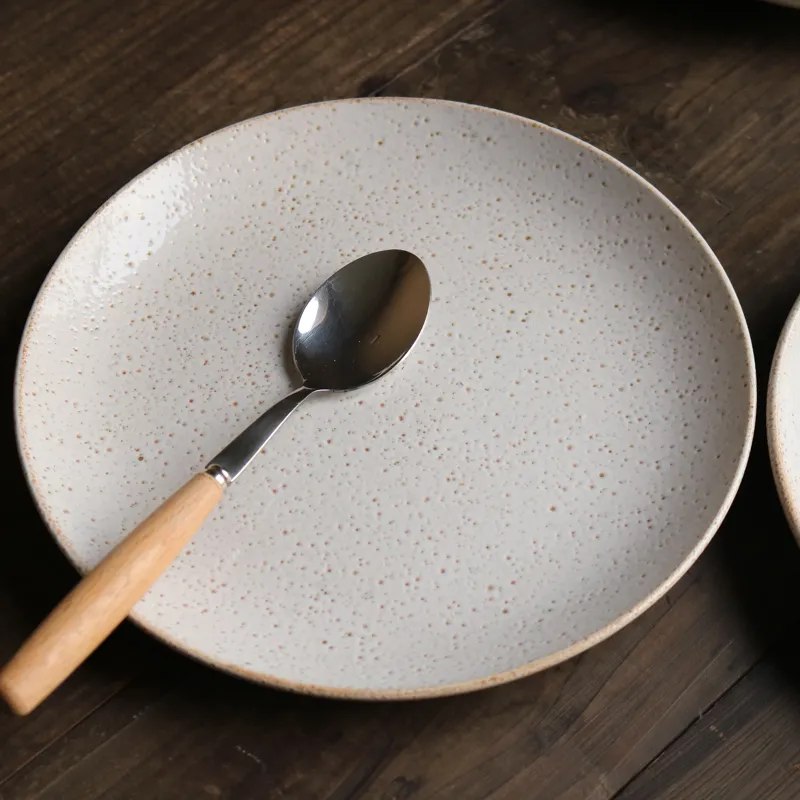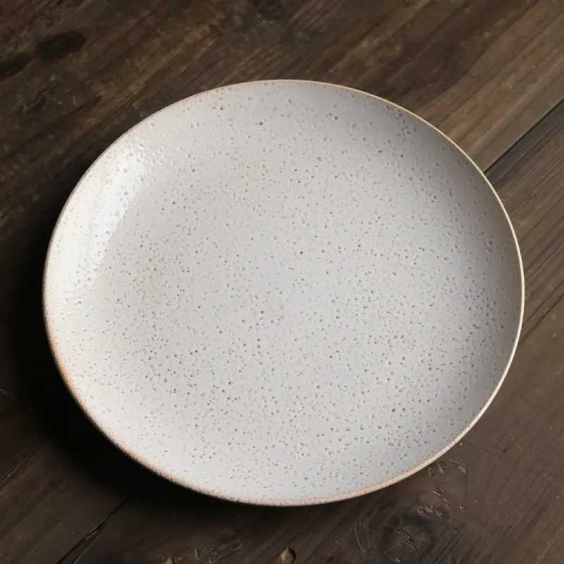 Ceramic Retro Ins Weathered Effect Pitted 8-Inch Plate: A Unique Japanese-Style Flat Plate