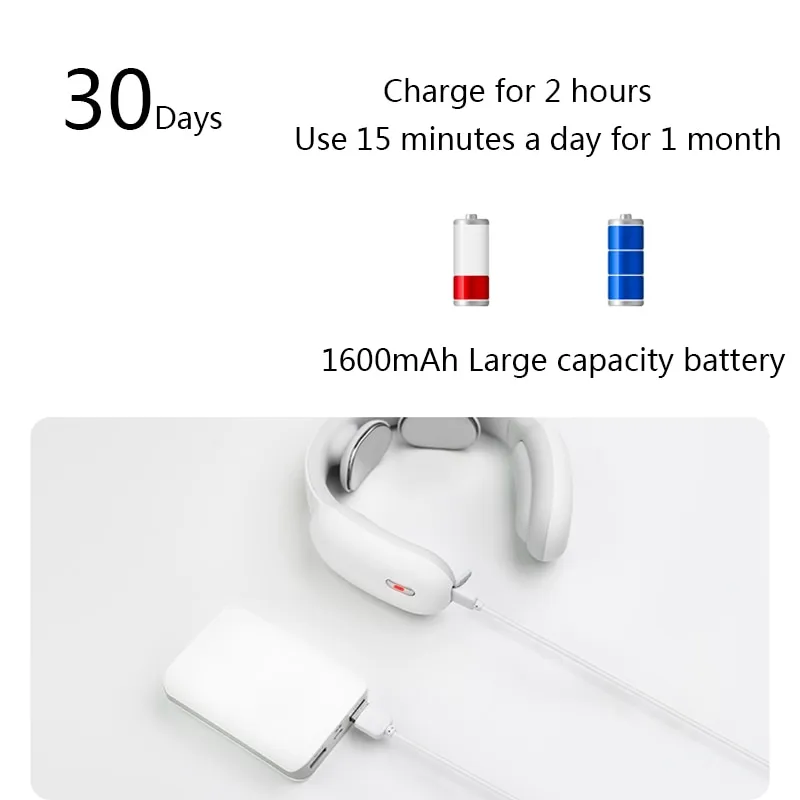 5. USB charging. 1600mAh battery, charged for 2 hours, massaged for 15 minutes every day, lasted for about 1 month.