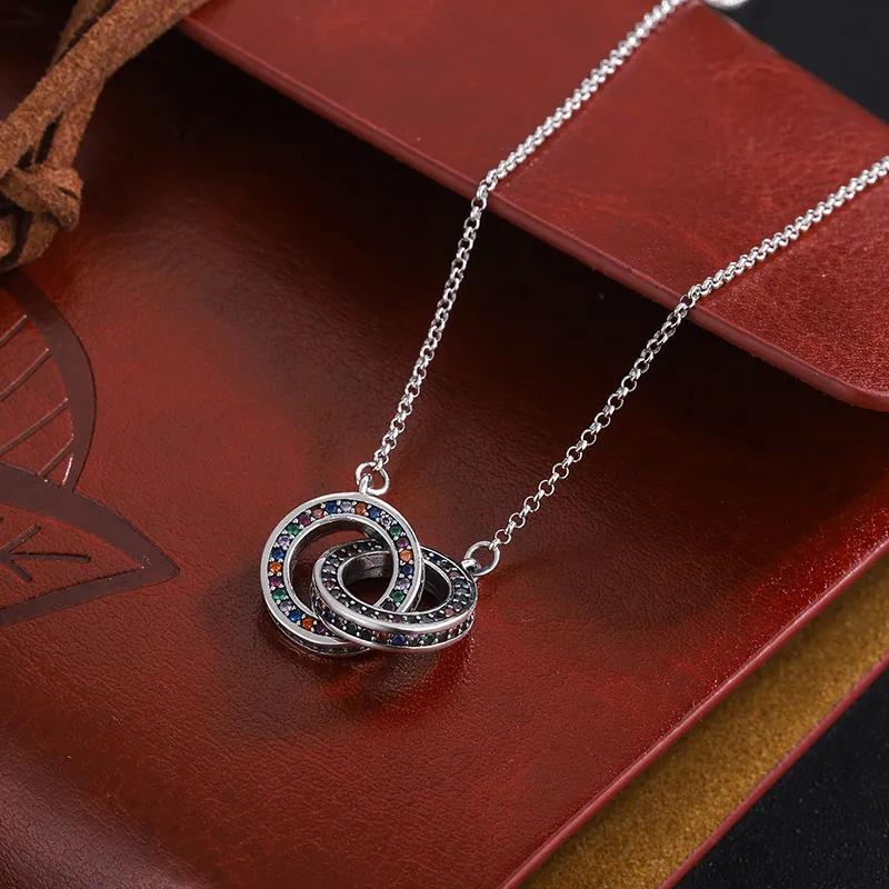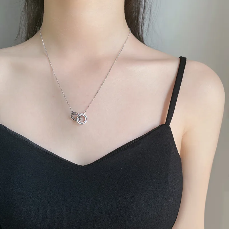 Chain Necklace Female Clavicle Chain Small Luxury S925 Sterling Silver Double Ring Jewelry