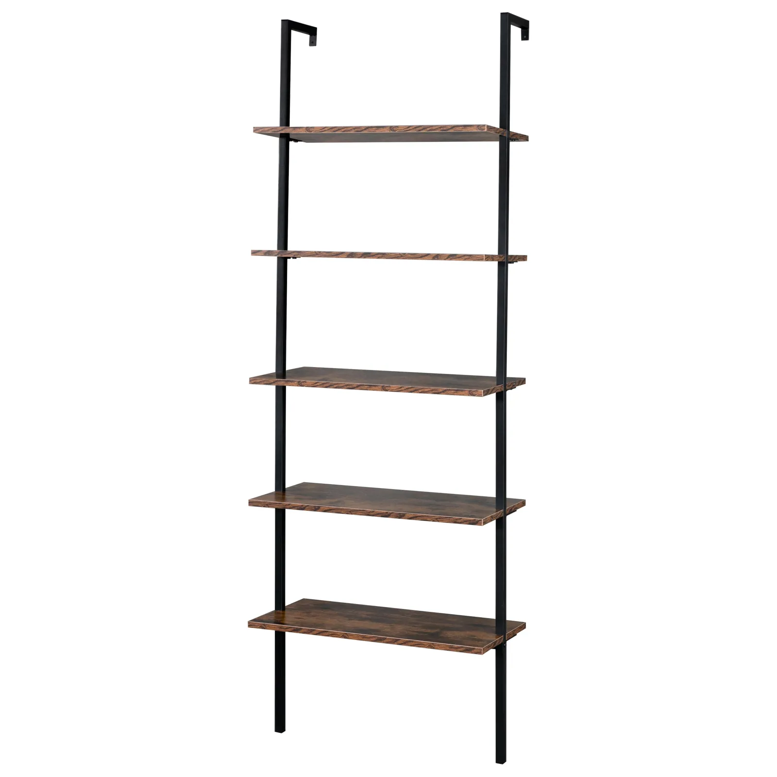 1. Vintage Ladder Wall Shelf - Rustic brown wood finish with black metal frame highlights an industrial & retro style, which can match