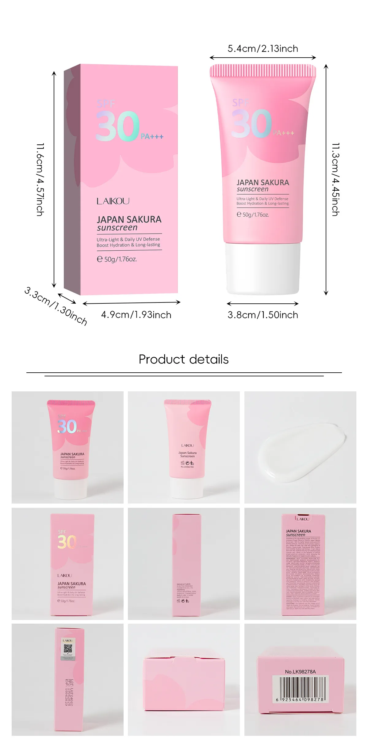 The Cherry Blossom Sunscreen SPF30 Isolation Skin Care Products provide the perfect combination of sun protection, hydration, and nourishment. With its broad-spectrum SPF30 protection and soothing cherry blossom extract, this sunscreen helps shield your skin from the harmful effects of UV rays while keeping it soft, hydrated, and radiant. Whether you’re looking to protect your skin from sun damage, reduce irritation, or enhance your skin’s natural glow, this sunscreen offers a gentle and effective solution for all your skincare needs.
