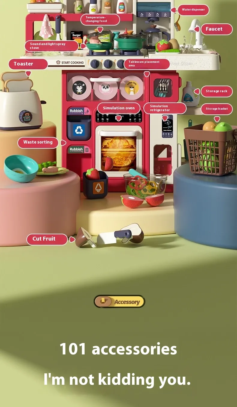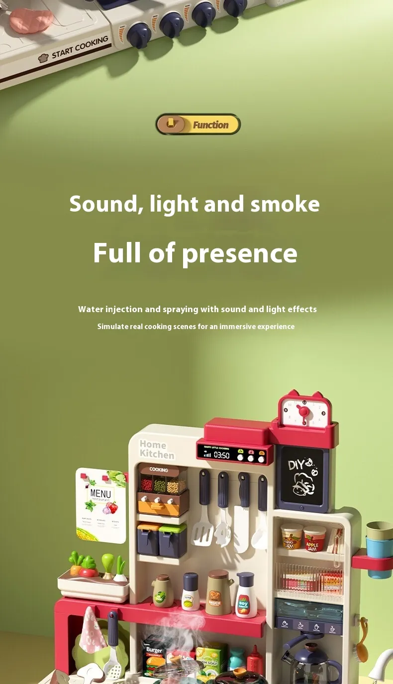 - Water Spray Feature: Adds fun and realism to the cooking experience.