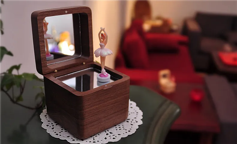 The music box is made from premium, eco-friendly wood for durability and elegance.