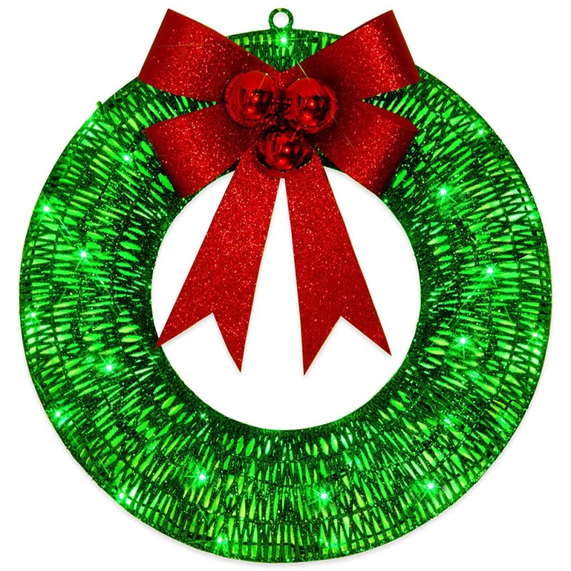 This LED Christmas wreath combines the traditional look of a garland wreath with the modern convenience of LED lighting. The combination of warm lights, metal frame, and a classic bowknot creates a timeless yet contemporary holiday decor piece that will look great year after year. Its versatile style fits seamlessly with both traditional and modern Christmas decor themes.