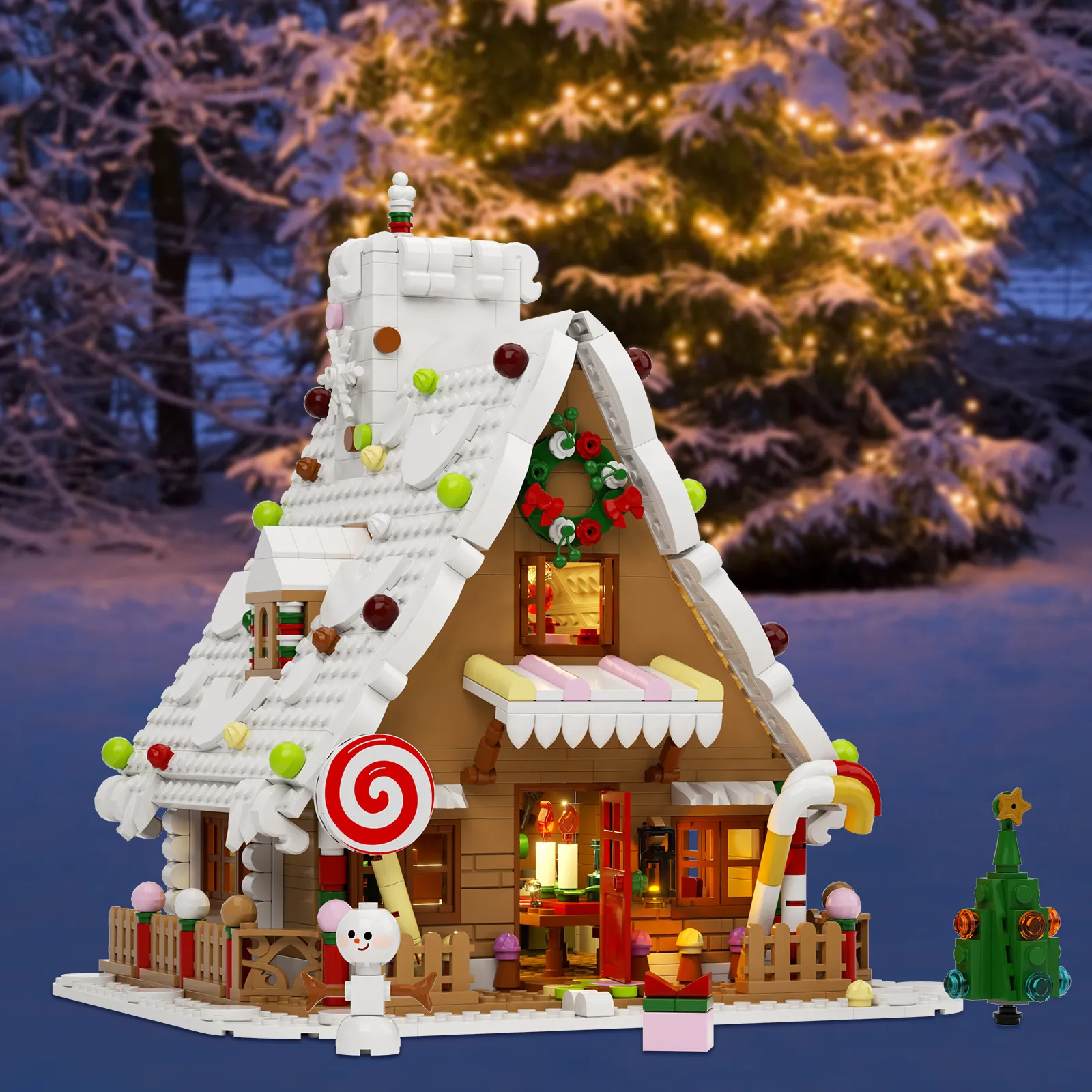 - Holiday-Inspired Details: Includes candy canes, wreaths, snow-covered roofs, and string lights.