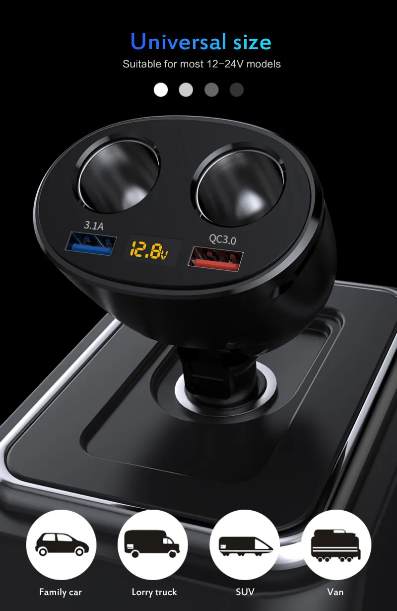 1. Product name: Rotating digital display dual cigarette lighter fast charging car charger