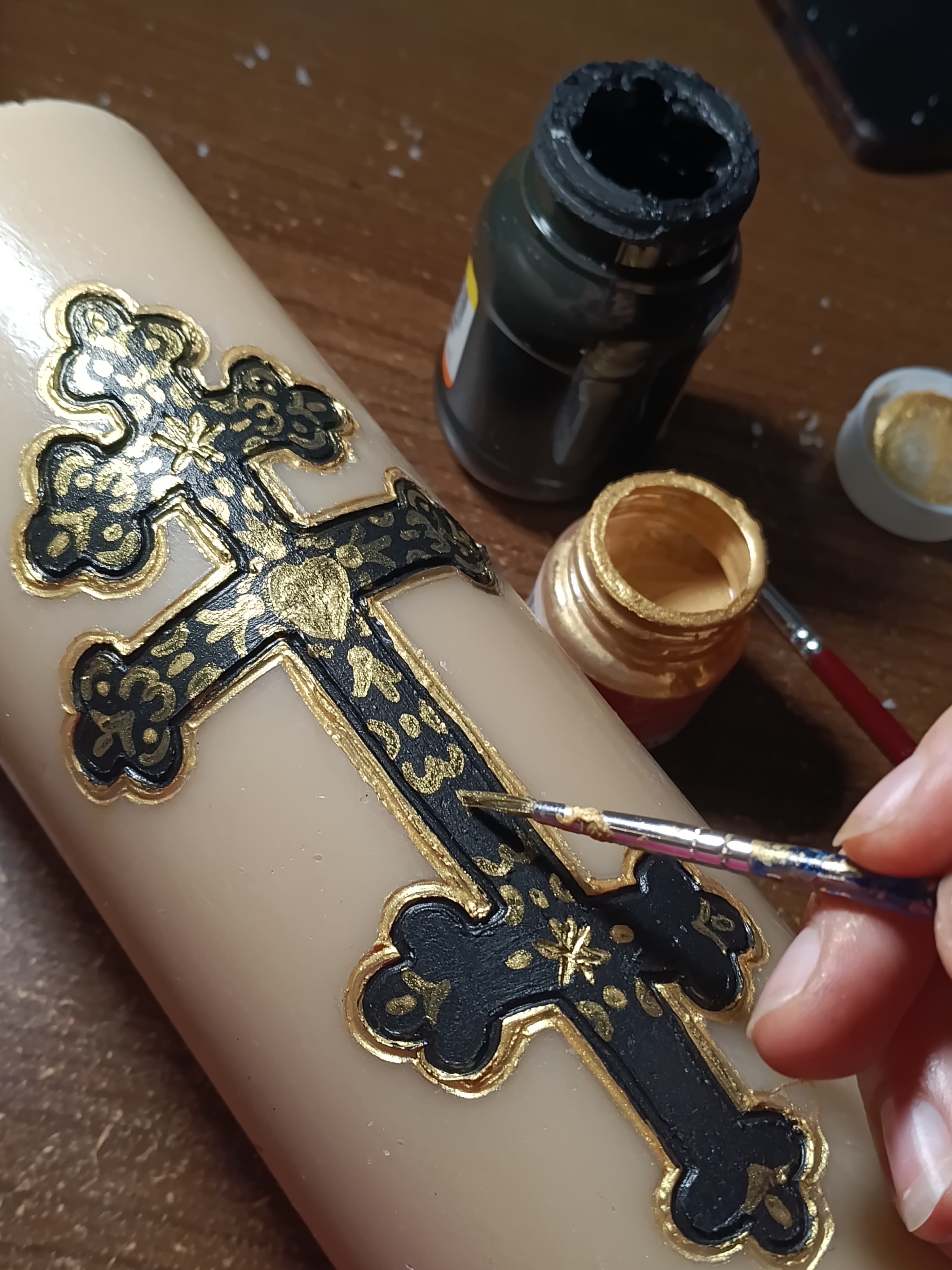 Simbolismo Profundo: La cruz ortodoxa representa el sacrificio de Cristo, lo que hace que este Cirio sea una pieza esencial