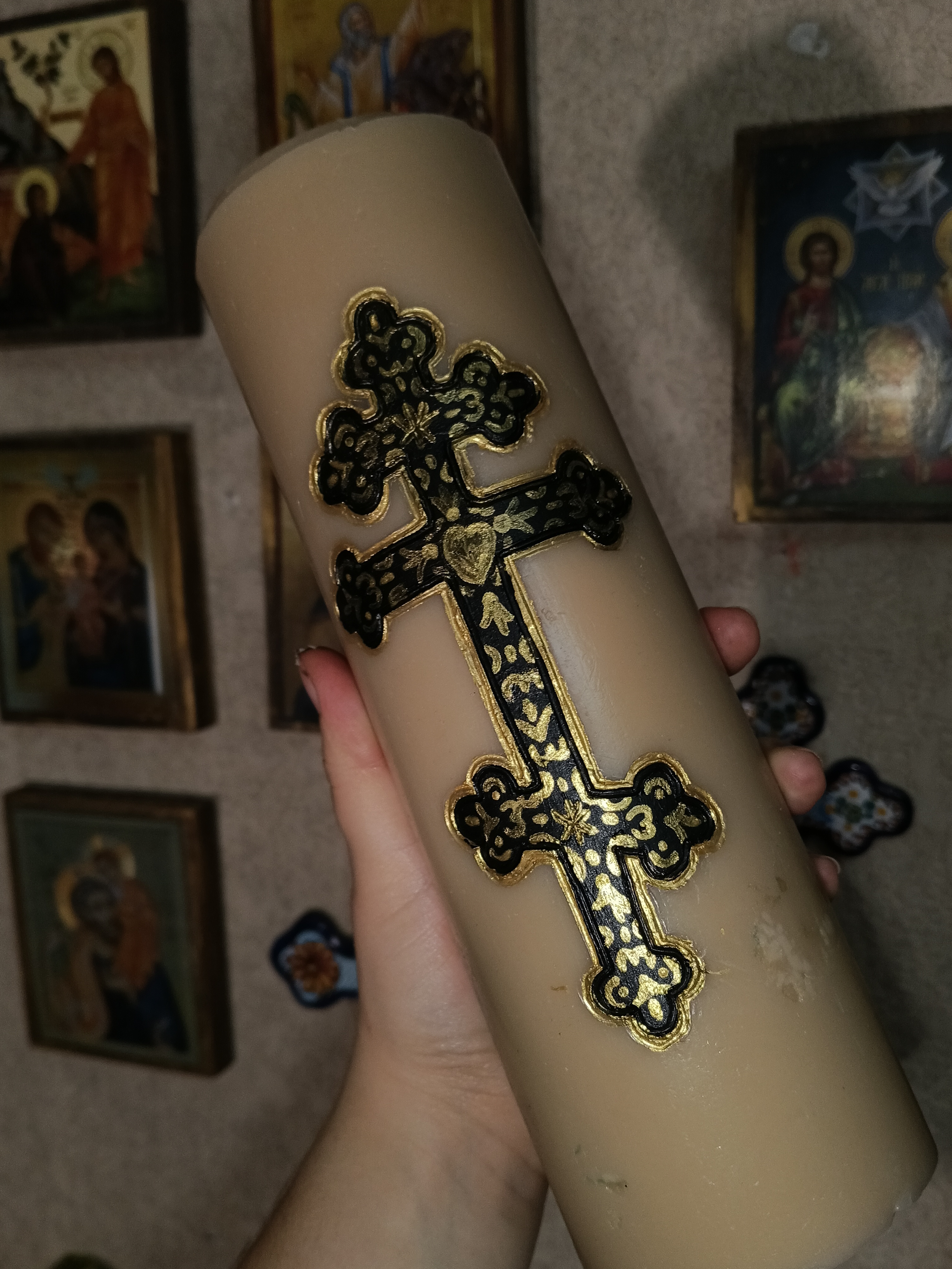 El Cirio Cruz Ortodoxa es una vela especial diseñada para resaltar el simbolismo de la cruz, que tiene una importancia significativa en la tradición cristiana ortodoxa. Este cirio está pensado para ser utilizado en ceremonias religiosas, especialmente en la iglesia ortodoxa, durante liturgias, misas, vigilias y celebraciones litúrgicas. La cruz, símbolo central de la fe cristiana, es el elemento principal de su diseño, convirtiéndolo en una pieza esencial para cualquier momento de devoción y oración.