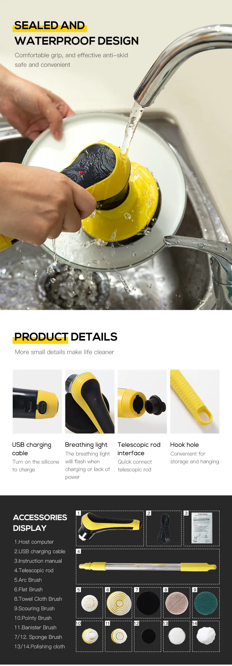 Cleaning Brush Bathroom Floor Electric Cleaning Brush Wireless Adjustable Brush