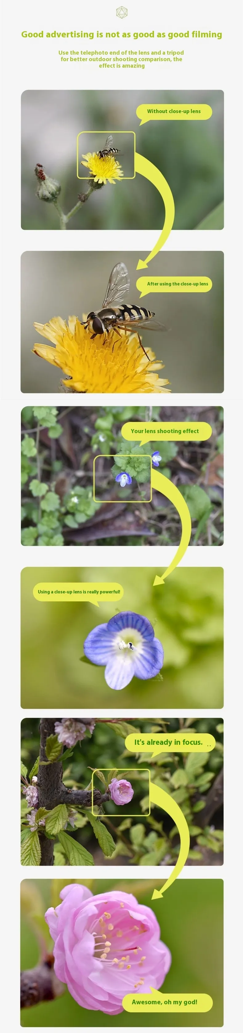 Enhance your photography skills with the Close-up Lenses Four-piece Set, perfect for macro and detailed shots. Designed for photographers and hobbyists in New Zealand, this kit allows you to explore sharp, high-quality close-up photography without investing in expensive dedicated macro lenses.