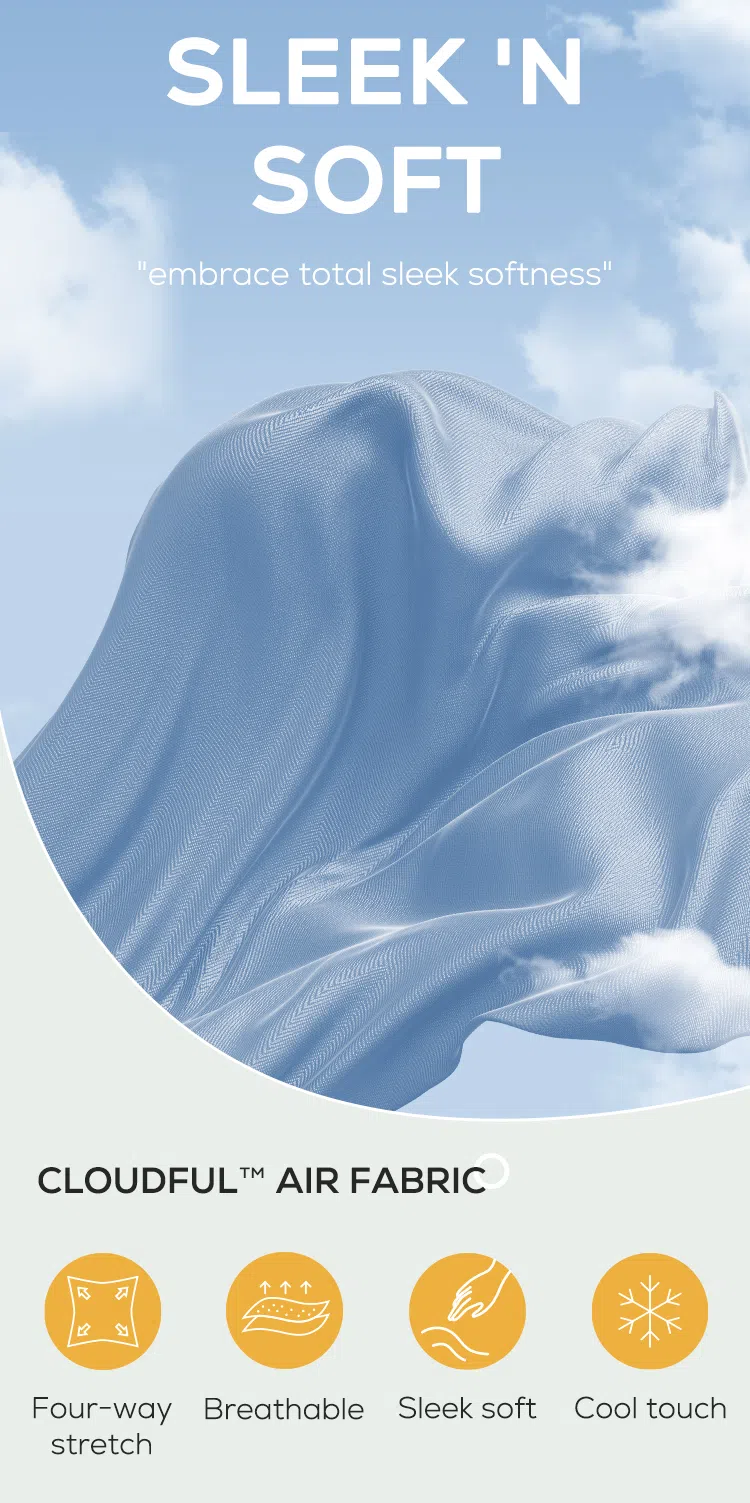 Cloudful™ Air Fabric. It is soft to the touch, moisture-wicking, and feels sleek on your skin. Ideal for humid conditions and low-impact activities like yoga, barre, ballet and dance, pilates, golf and other casual activities.