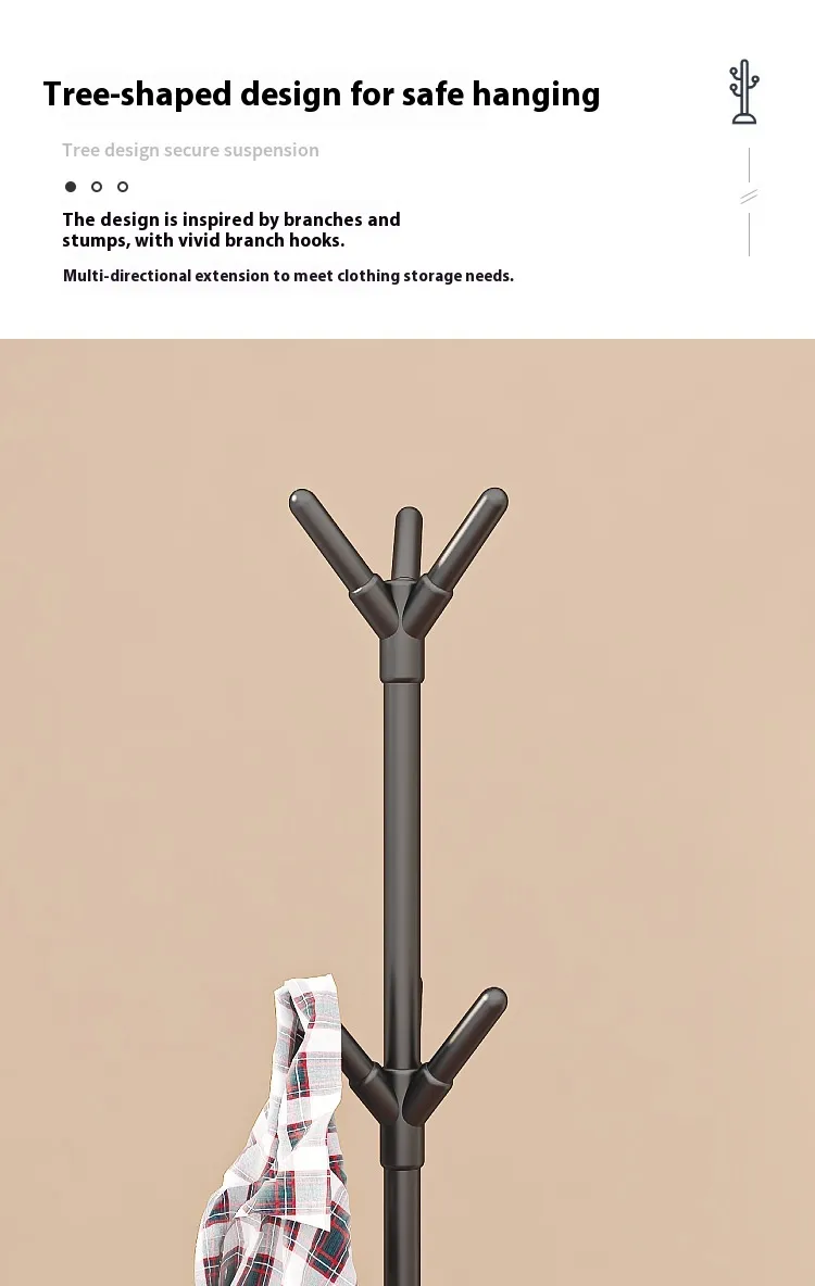 A coat rack is a piece of furniture designed to hold coats, jackets, hats, umbrellas, and bags. Coat racks come in various designs, from wall-mounted units to freestanding models. They typically feature hooks or pegs for hanging items and can include additional shelves for storing smaller items. Depending on the design, coat racks can be placed in entryways, hallways, bedrooms, or even offices.