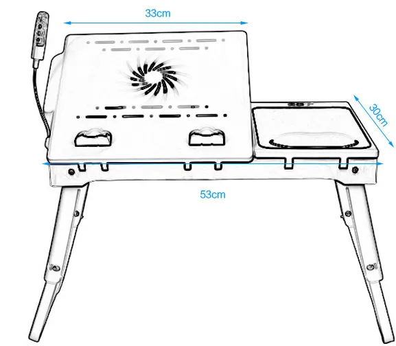 Functional selling point: 2 levels of height adjustment, multi-angle adjustable, USB fan