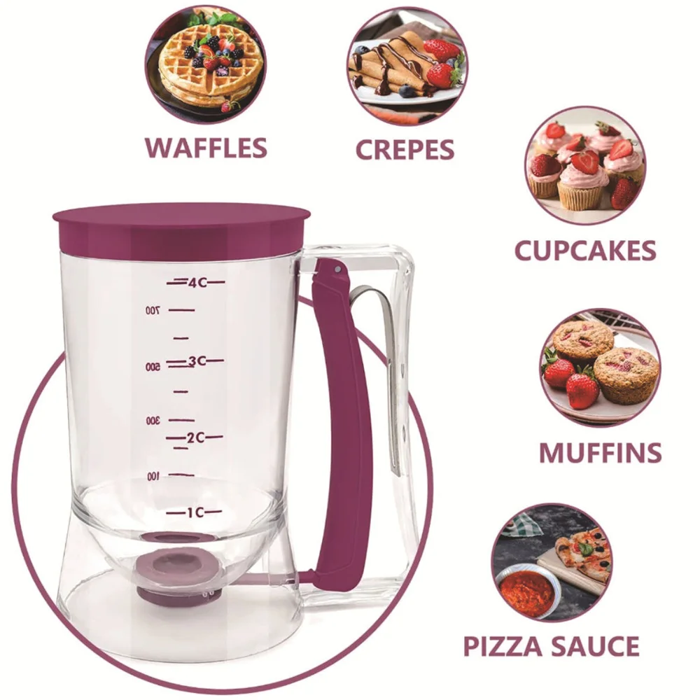 The smooth, easy-pour spout allows for precise, mess-free dispensing, making it simple to portion batter evenly for pancakes, cupcakes, and