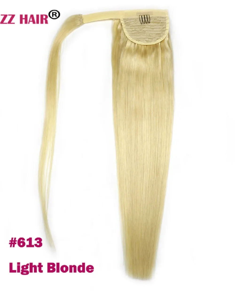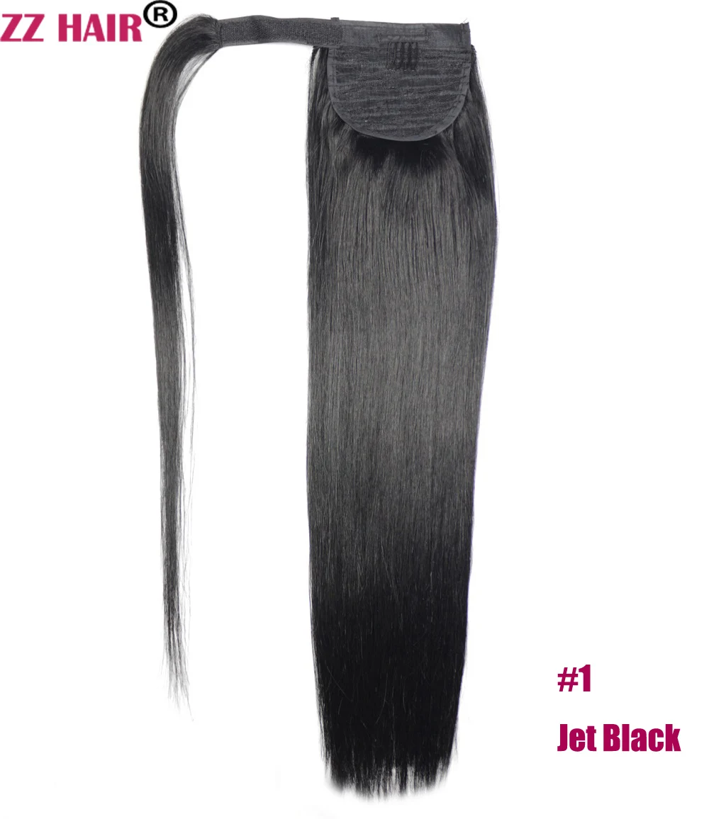 Color: #1, Life Span: 6 Months With Proper Care, Stretched Length: 20inches, Longest Hair Proportion: 35%-45% - ZZHAIR 100% Human Hair Extensions 16"-28" Machine Made Remy Magic Wrap Around Ponytail 60g-120g Clip In Horsetail Stragiht