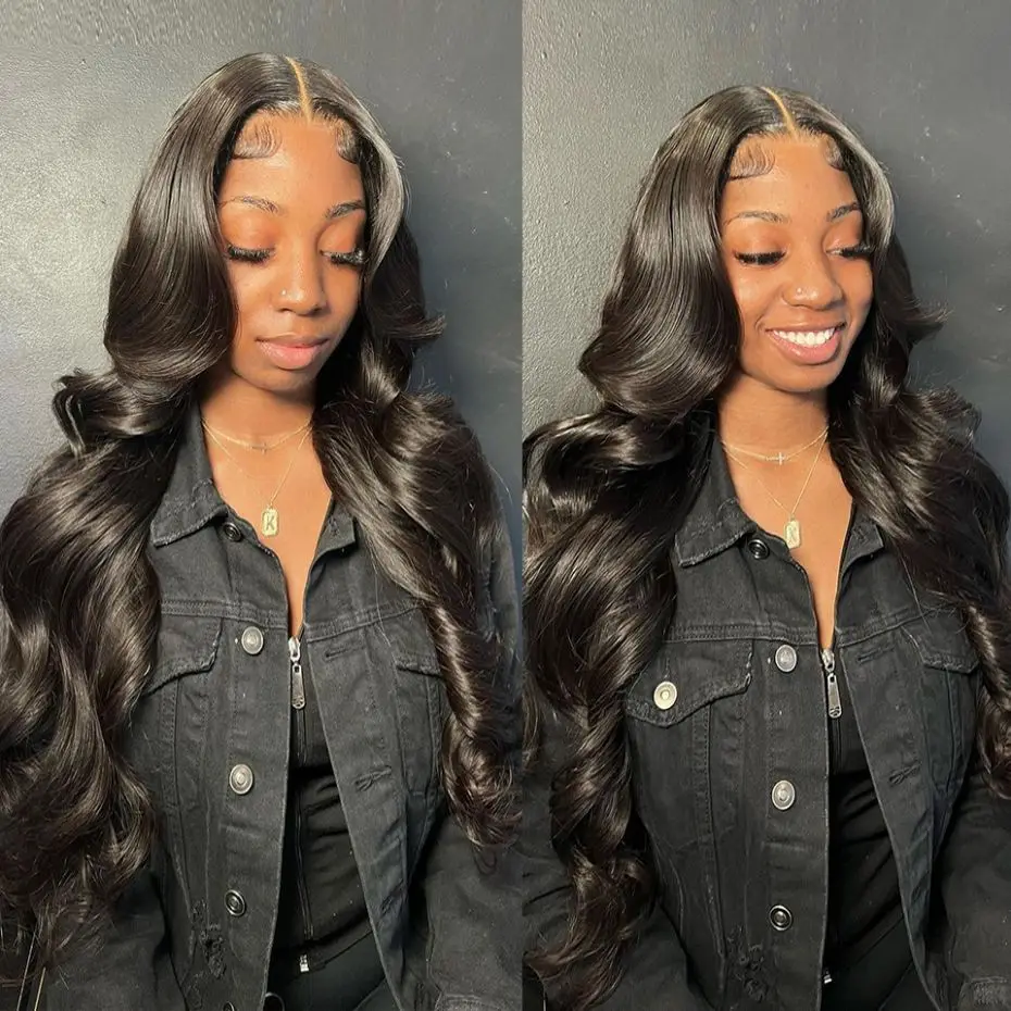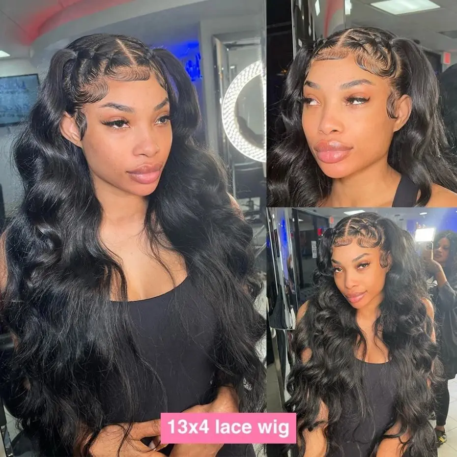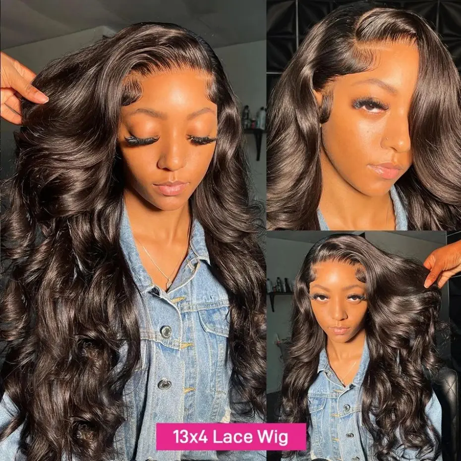 Color: #1B, Ships From: CHINA, Stretched Length: 26inches, Density: 150% - 13x6 13x4 Body Wave Glueless Wig HD Transparent Lace Front Wig Human Hair Pre Plucked Brazilian 4x4 Lace Closure Wigs For Women