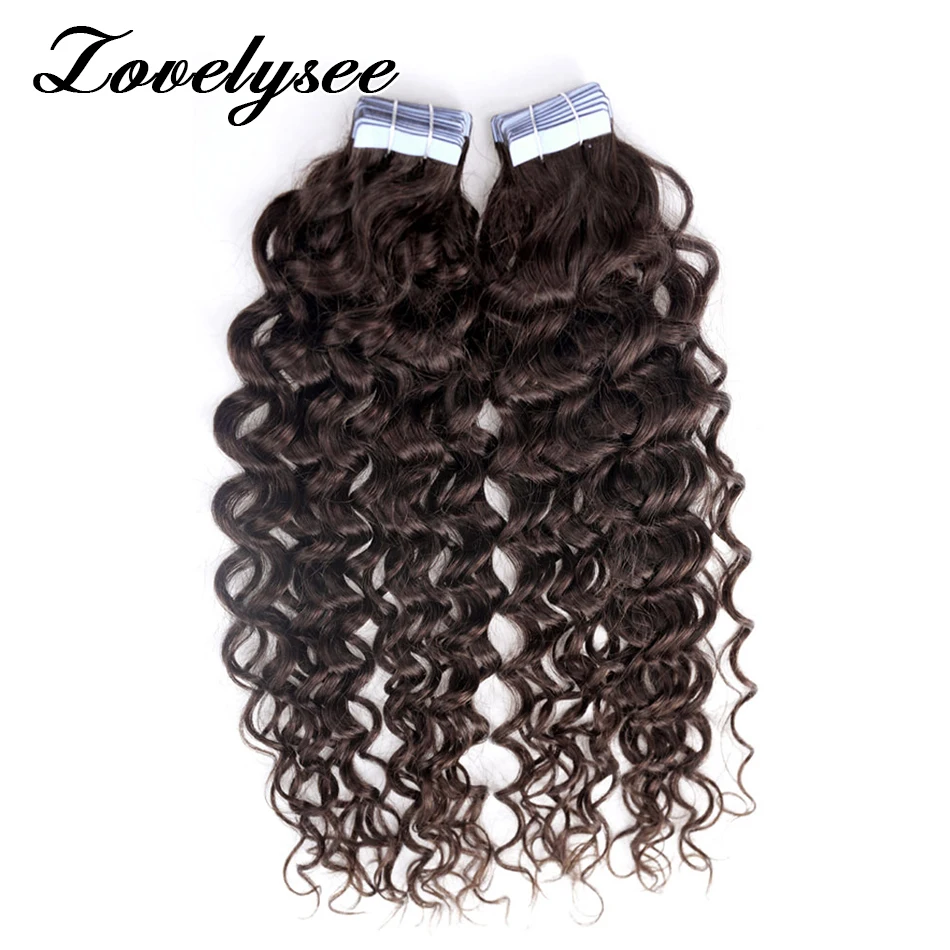 Color: #2, Length: 22 inches, Items per Package: 40 pcs - Water Wave Tape in Human Hair Extensions 2g/pcs Dark Brown Real Human Hair Adhesive Invisible Keratin Hair Extensions for Women
