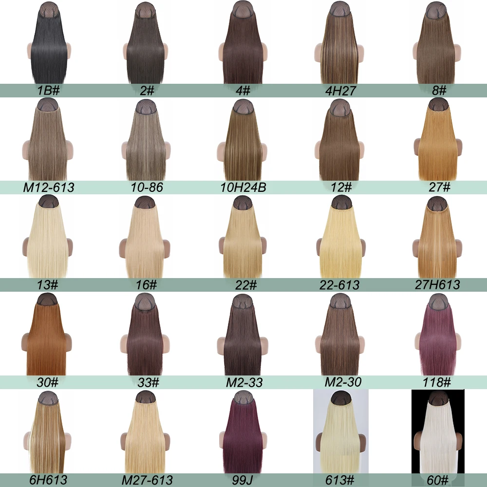 Color: #26, Stretched Length: 16inches, Ships From: CHINA - Synthetic Natural Wavy No Clip Fish Line Invisible Hair Extensions Mixed Color Blonde Black Artificial False Hair Piece ForWomen