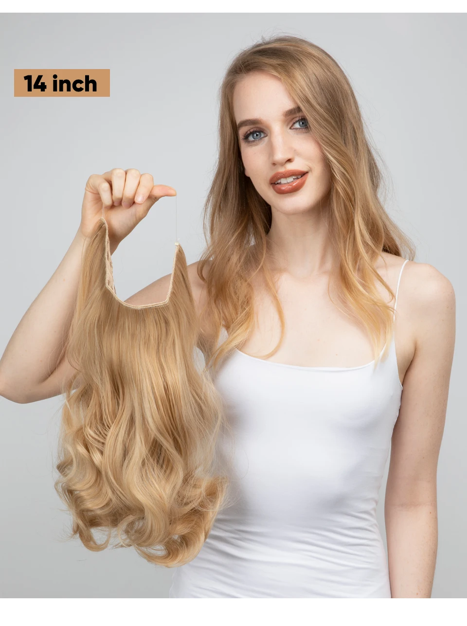 Color: #6, Stretched Length: 18inches - Synthetic No Clip Wave Hair Extensions Ombre Natural Black Blonde Pink One Piece False Hairpiece Fish Line Fake Hair Piece