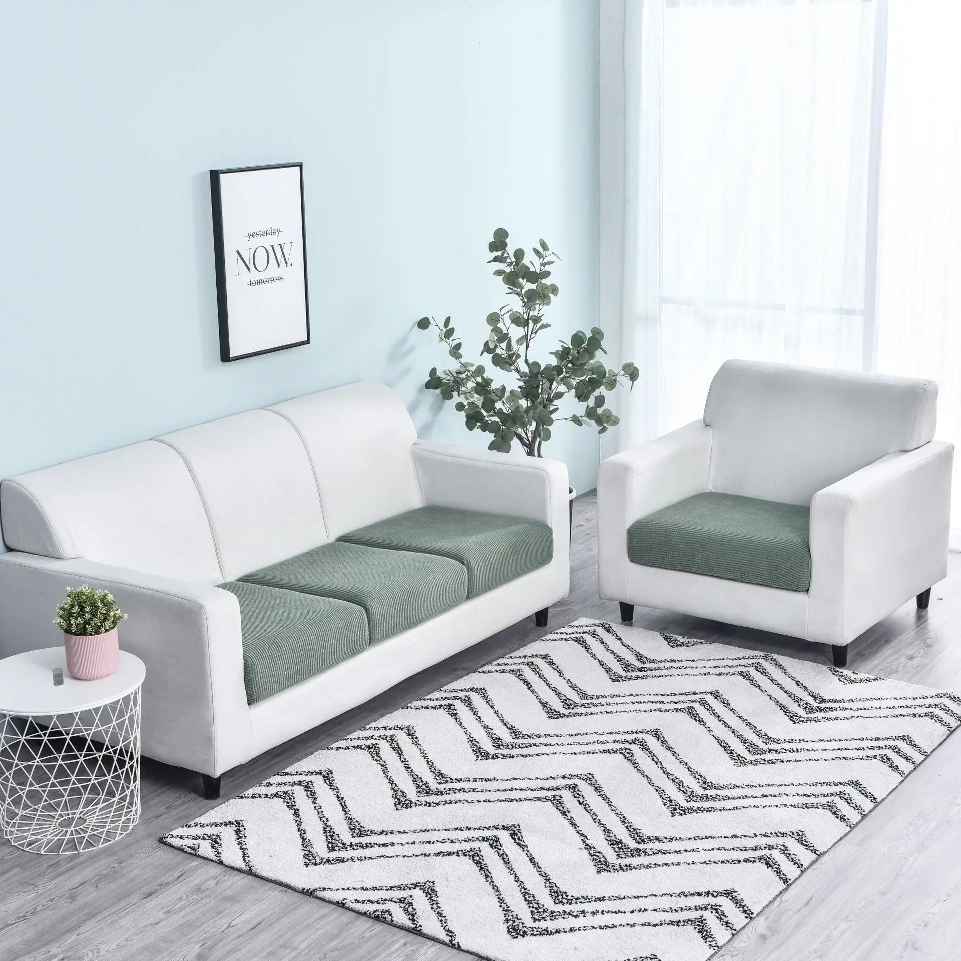 Color: apple green, Specification: 80*80cm - Jacquard Sofa Cushion Cover for Living Room Pets Kids Furniture Protector Polar Fleece Stretch Washable Removable Couch Covers