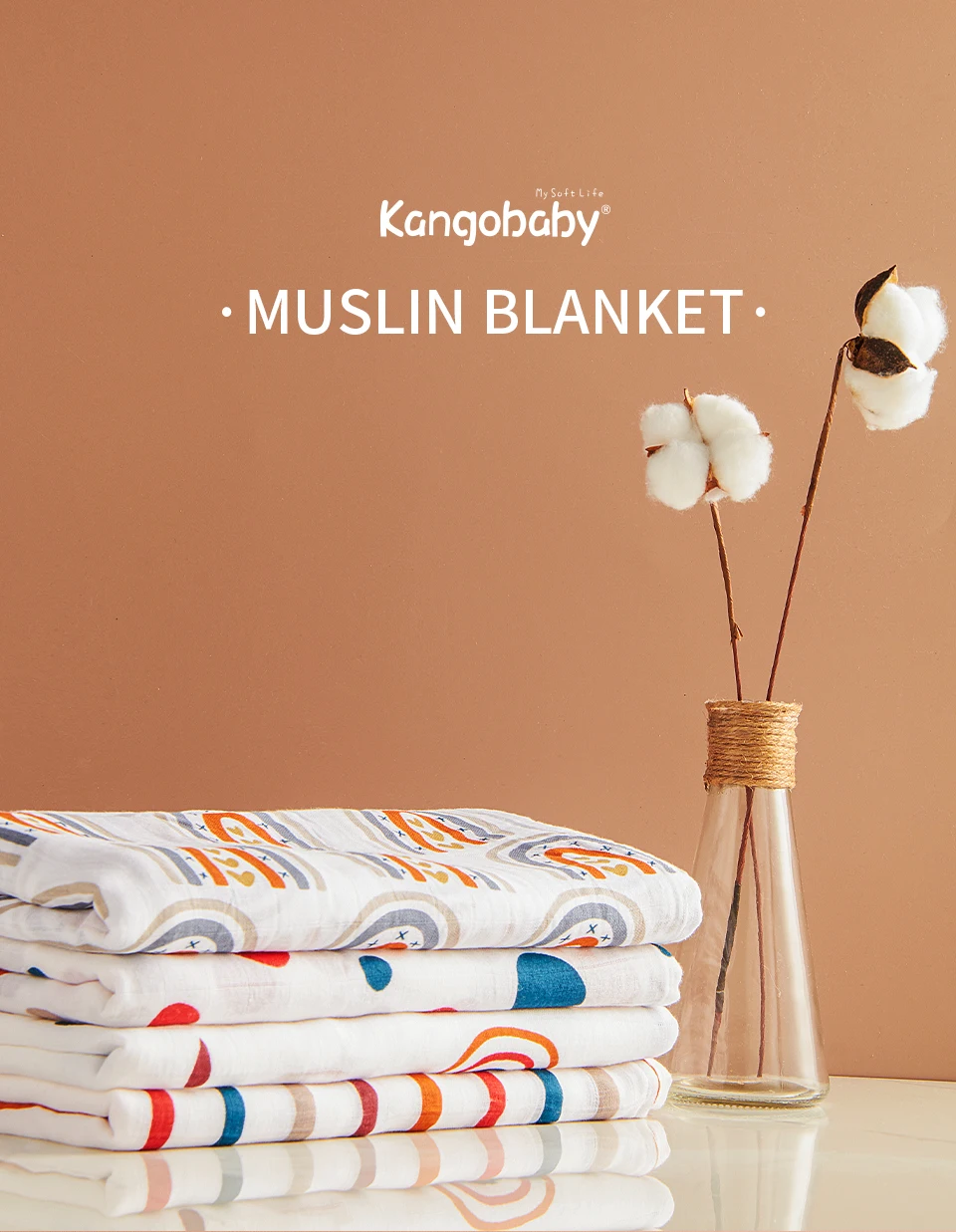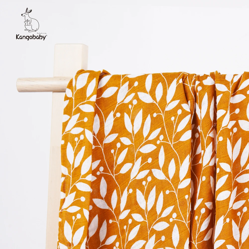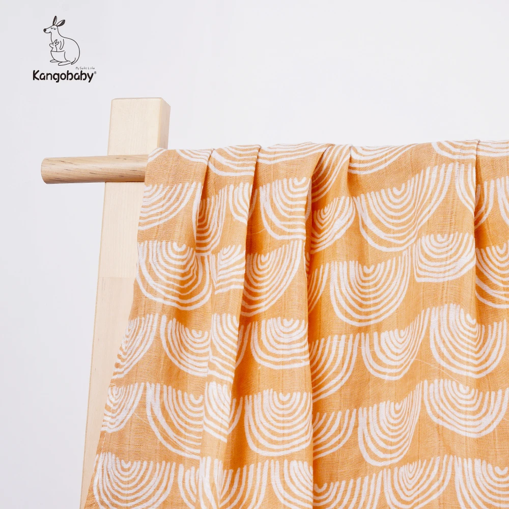 Color: APRICOT - Kangobaby New Design 2pcs Set Double Layers 100% Cotton Newborn Baby Muslin Swaddle Blanket