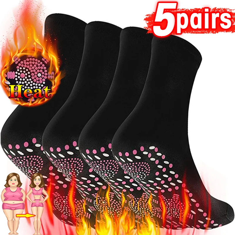 Color: army green - 1/5pairs Tourmaline Self-Heating Socks Winter Warm Thermal Health Care Socks Slimming Health Short Sock Magnetic Therapy Sock