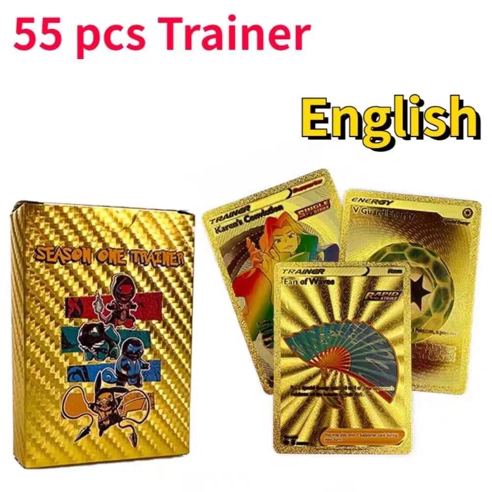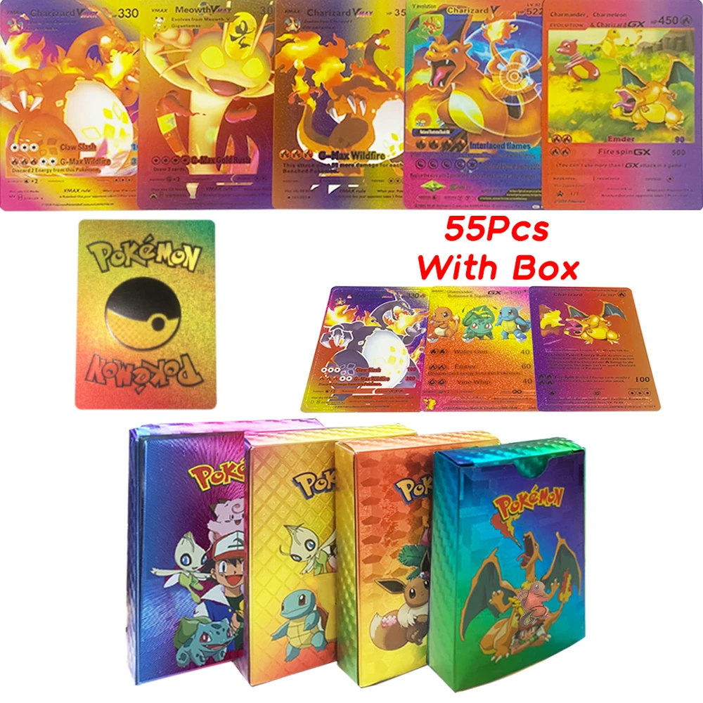 55pcs Pokemon Colorful 3D Gold Foil Card Charizard Pikachu Arceus Rainbow English French Spanish VSTAR GX VMAX Collection Cards