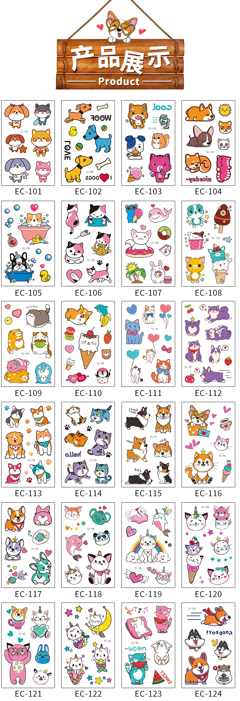 Color: army green - Cartoon Animal Waterproof Temporary Tattoo Cute Pet Cats and Dogs Tattoo Stickers Children Boy Girl Fake Body Art Flash Tatoo