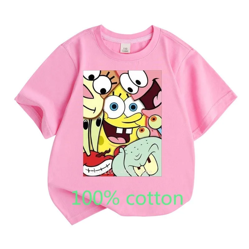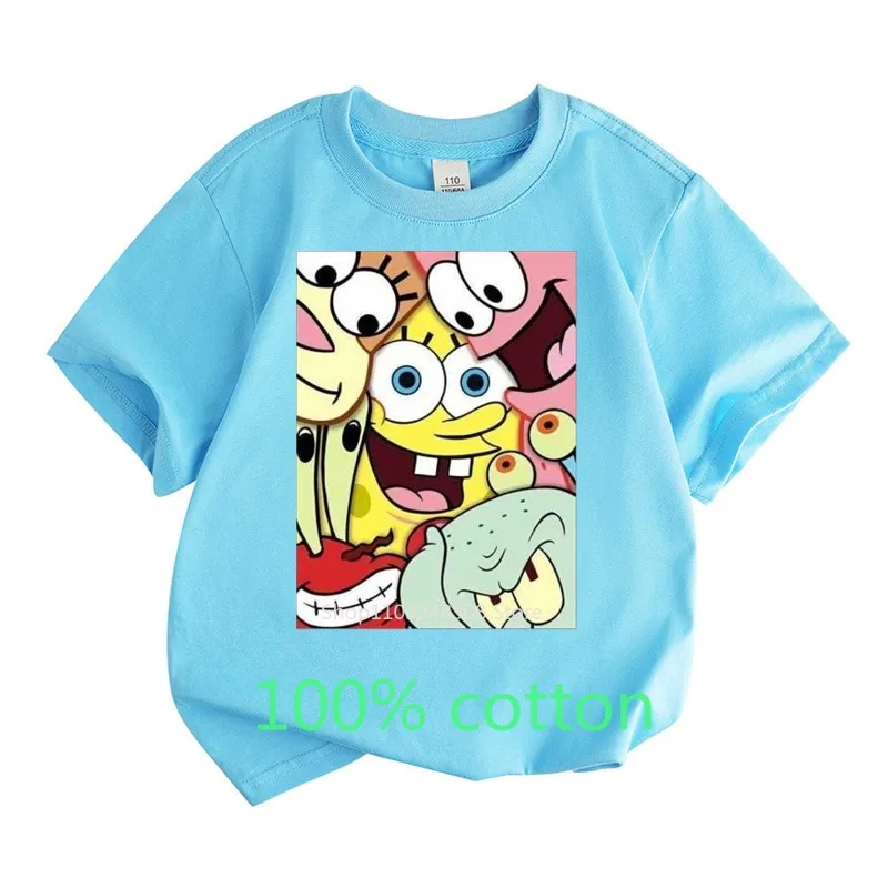 Color: army green, Kid Size: 9T - Mr. Krabs Squidward Sandy Spongebob T-shirt 100%Cotton Children Round Neck Short-sleeved Boys Girls Fashion Kids Clothes