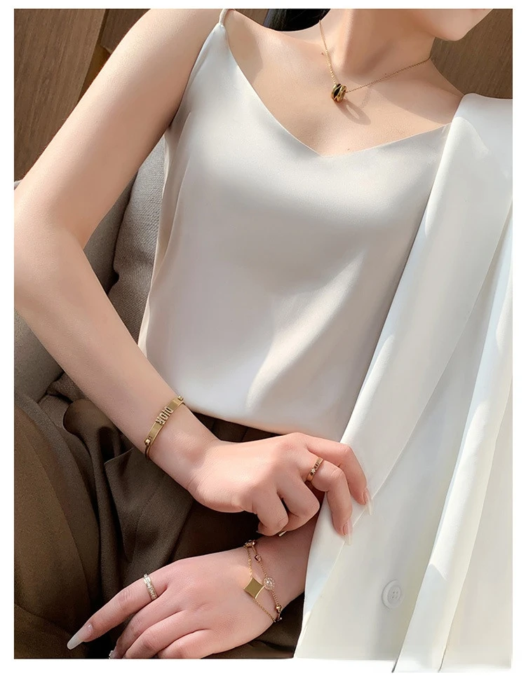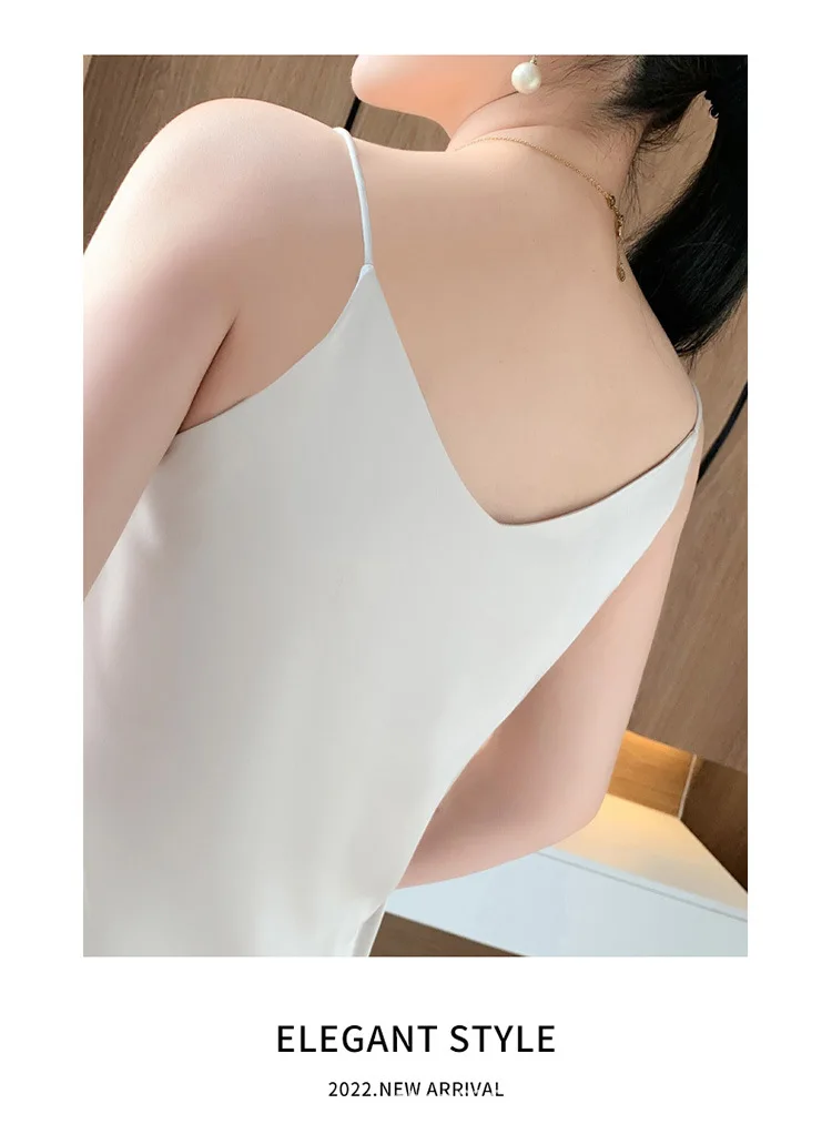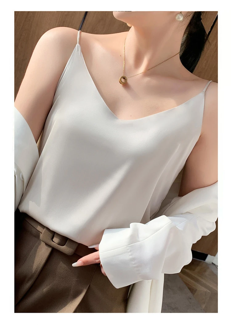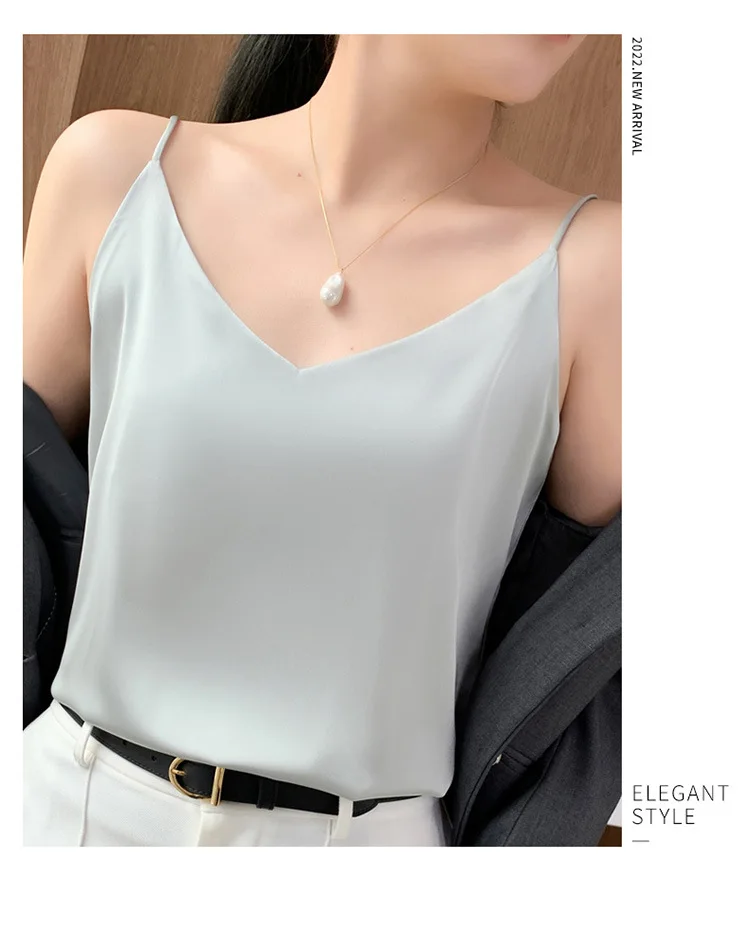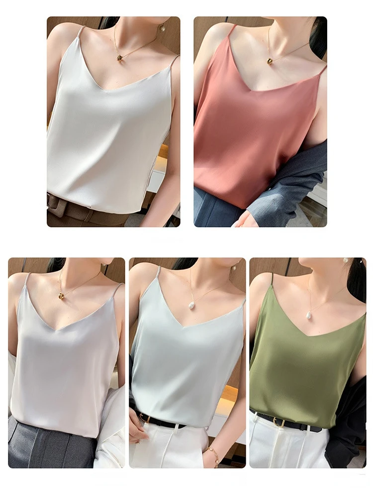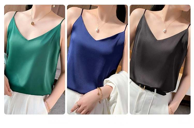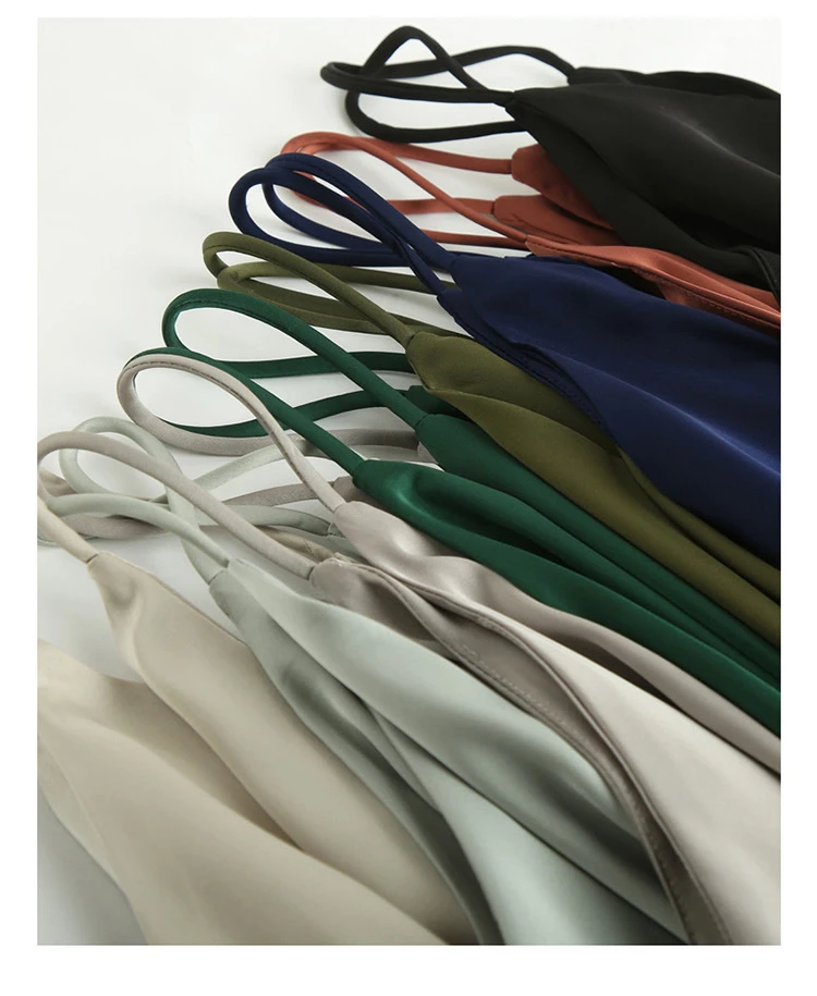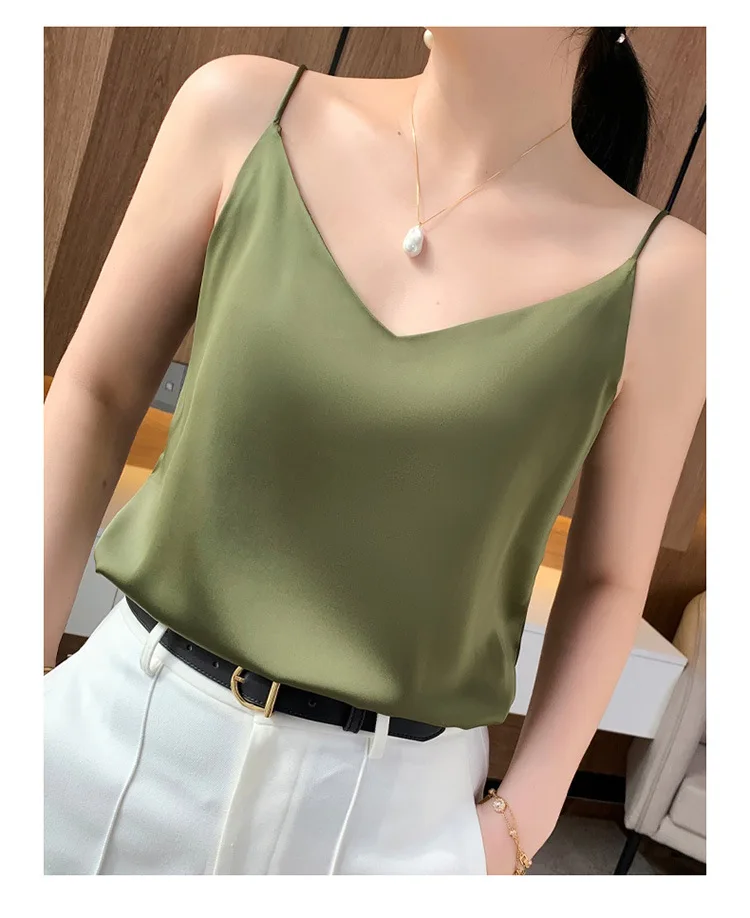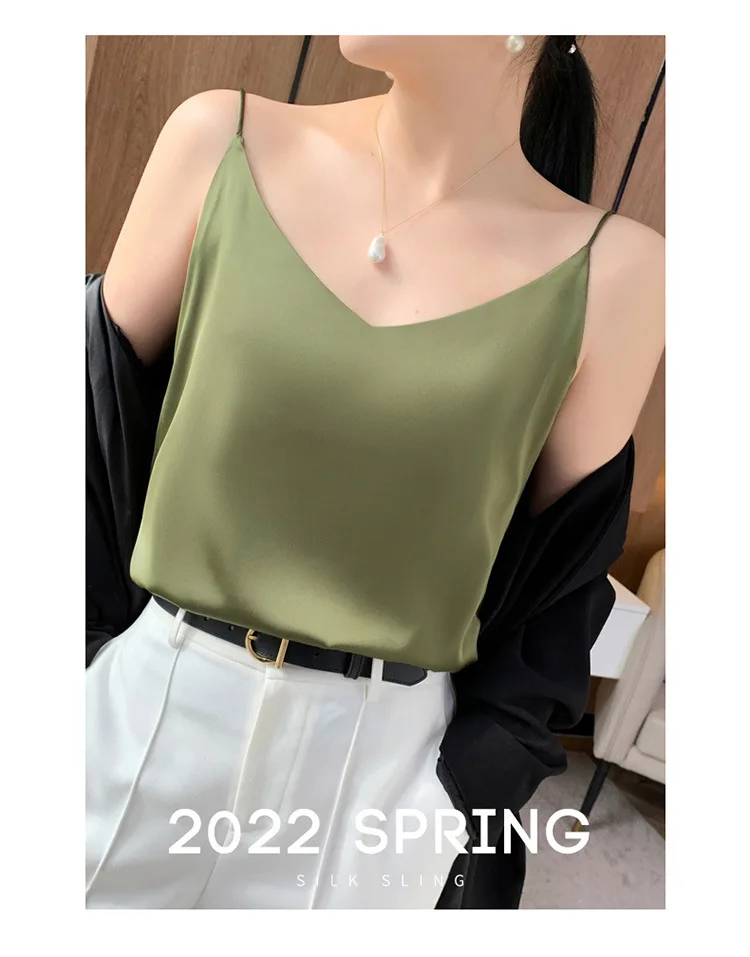 Color: army green, Size: XL - Fashion Silky Camisole Women's Inner With White Bottoming Satin Top Summer V-neck Thin Section