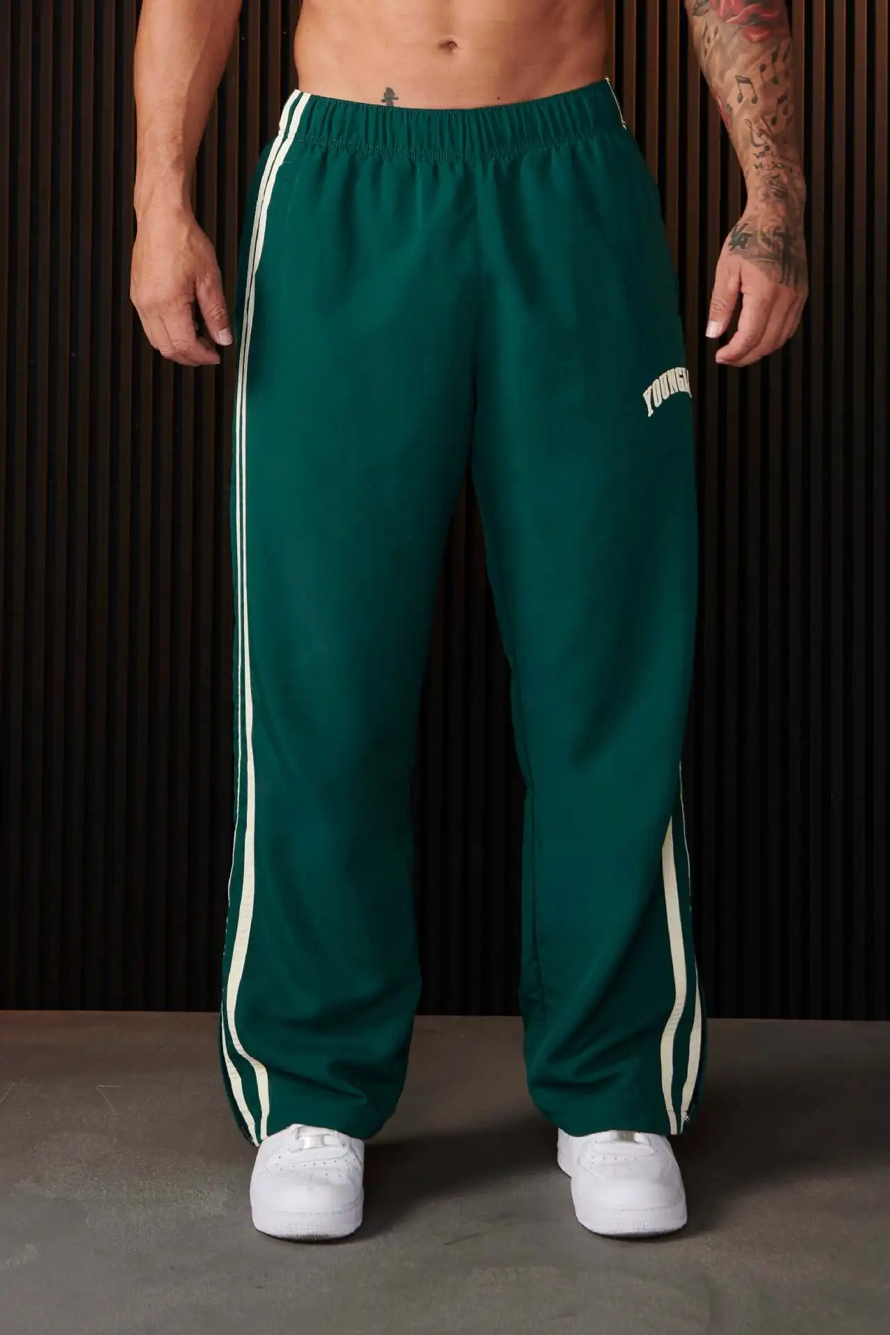 Color: army green, Size: XL - Jogger Men's Sweatpants Gym Sports Fitness Splicing Strips Printing Mid Waist Casual Pants Ya Fashion Men Clothing Wide Leg Pan