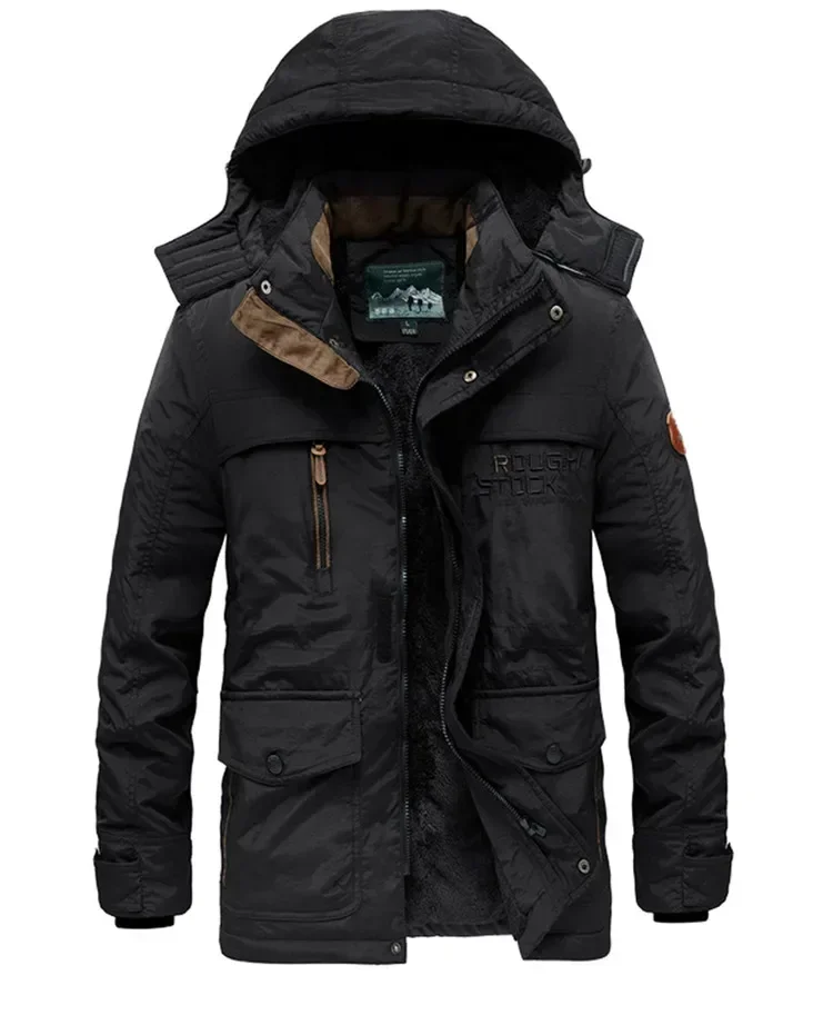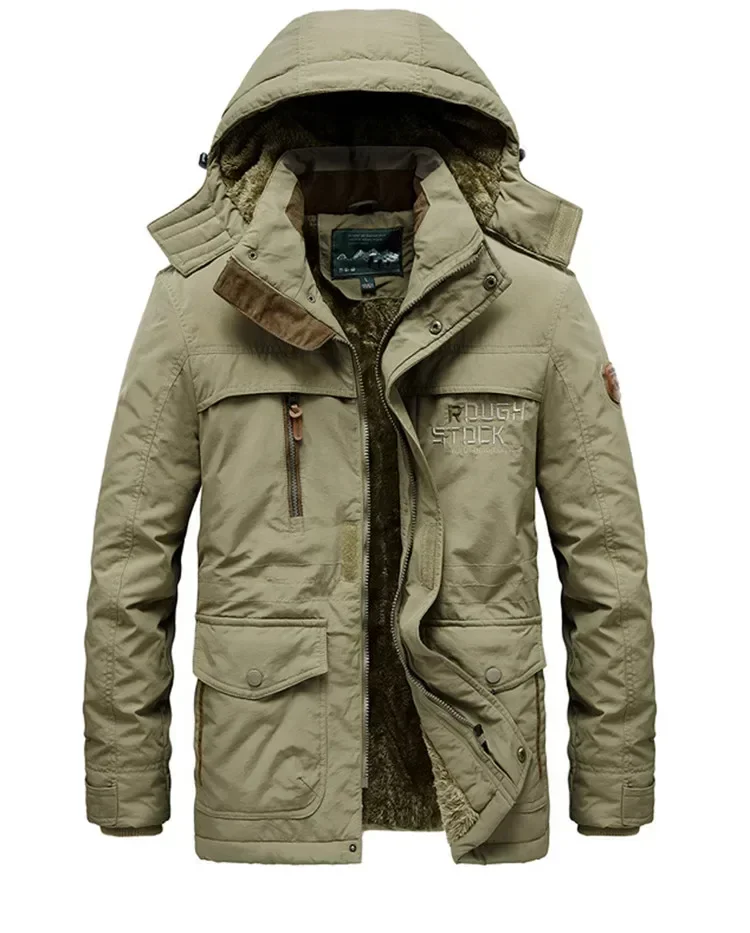 Color: army green, Size: XXXL - TELLHIGH 2024 Winter Parka Men Jacket Mens Plus Velvet Men Hooded Windbreaker Coats Men Casual Warm Jackets Coat Detachable Hat