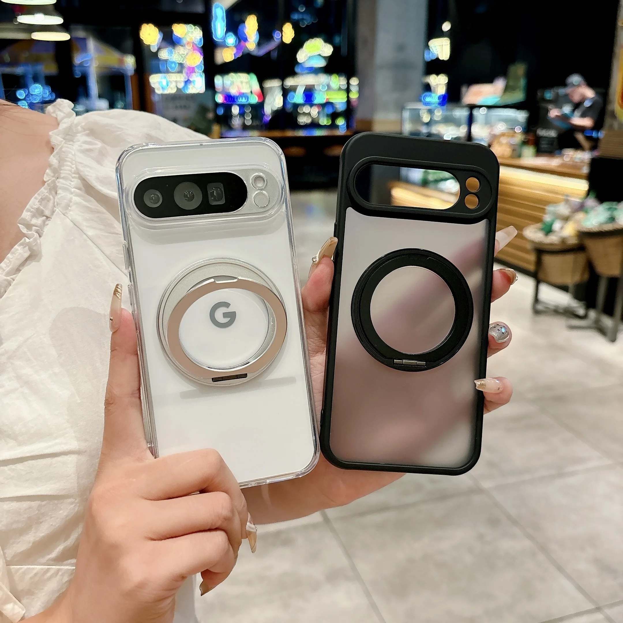 for Magsafe Matte Rotating Bracket Case for Google Pixel 10 9 Pro XL 8 7 6 9A 8A 7A 6A Holder Stand Transparent Shockproof Cover