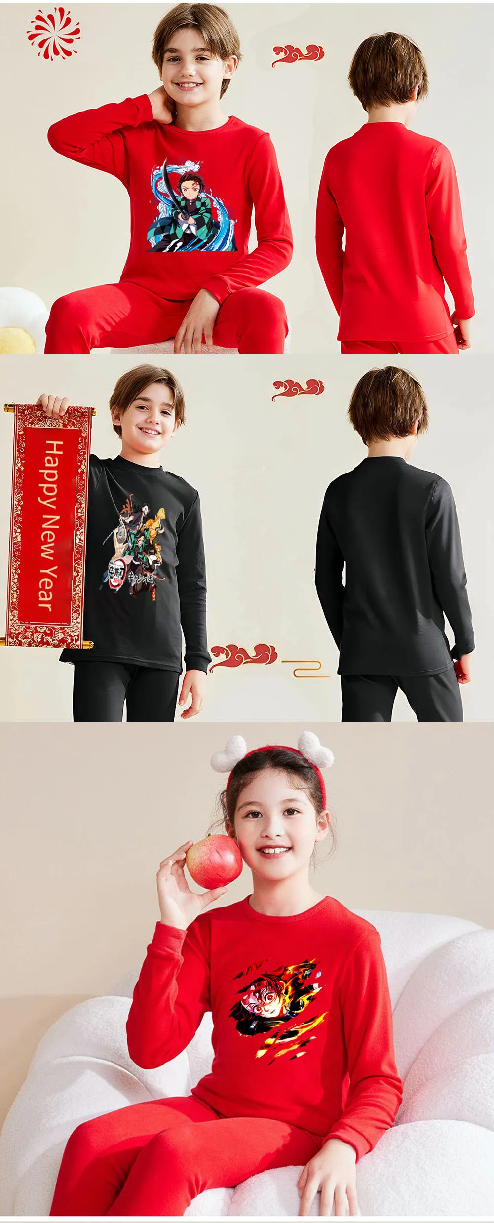 Color: Beige, Kid Size: 11 - Demon Slayer Sleepwear Kamado Tanjirou Kamado Nezuko Agatsuma Zenitsu Children's Homewear Suit Long-sleeve Two-piece Pajamas Set