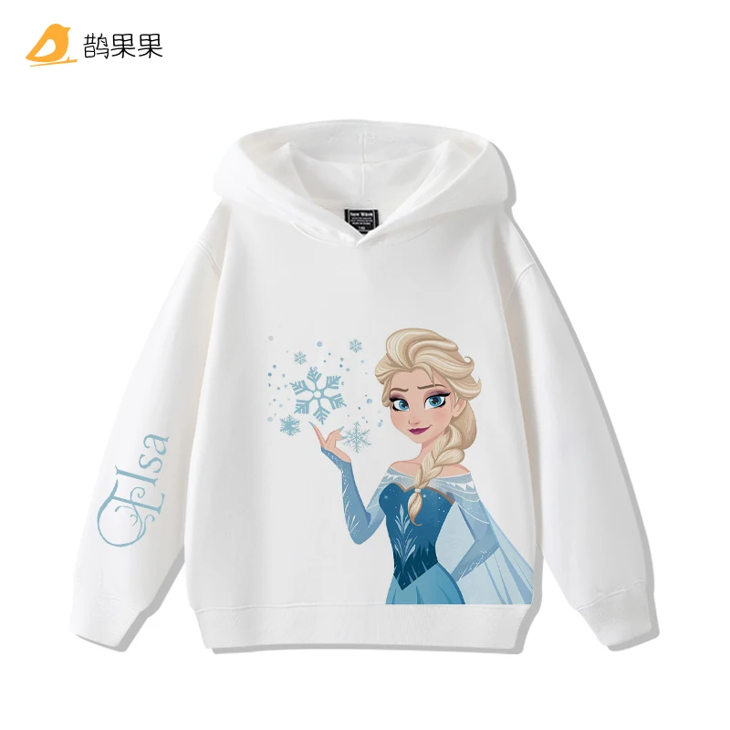 Color: Beige, Kid Size: 4T - Queen Elsa Surrounding Girls Autumn and Winter Hooded Sweatshirt Children Girl Children's Tops Cute Long-sleeved Coat