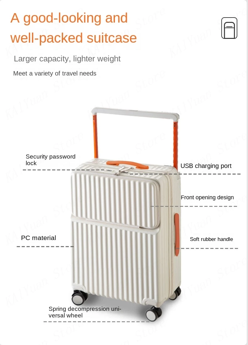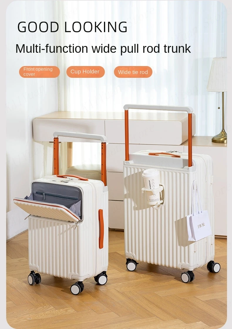 Color: Beige, Luggage Size: 20Inches 500mm - Wide Pull Rod Suitcase 2024 New Universal Wheel Small Lightweight Boarding Luggage 20 inch Password Lock Travel Case