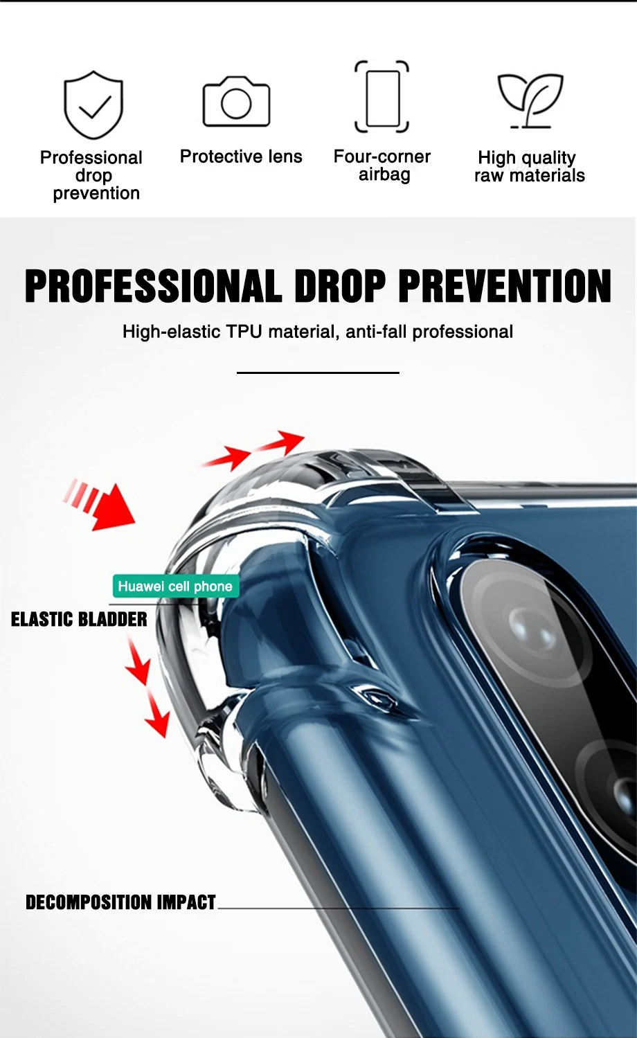 Color: Beige, Material: Cotton - Soft TPU Silicone Shockproof Phone Case For Huawei Honor 8X MAX 9X X10 Play 3 3E 4T Pro Transparent AirBag Anti Knock Back Cover