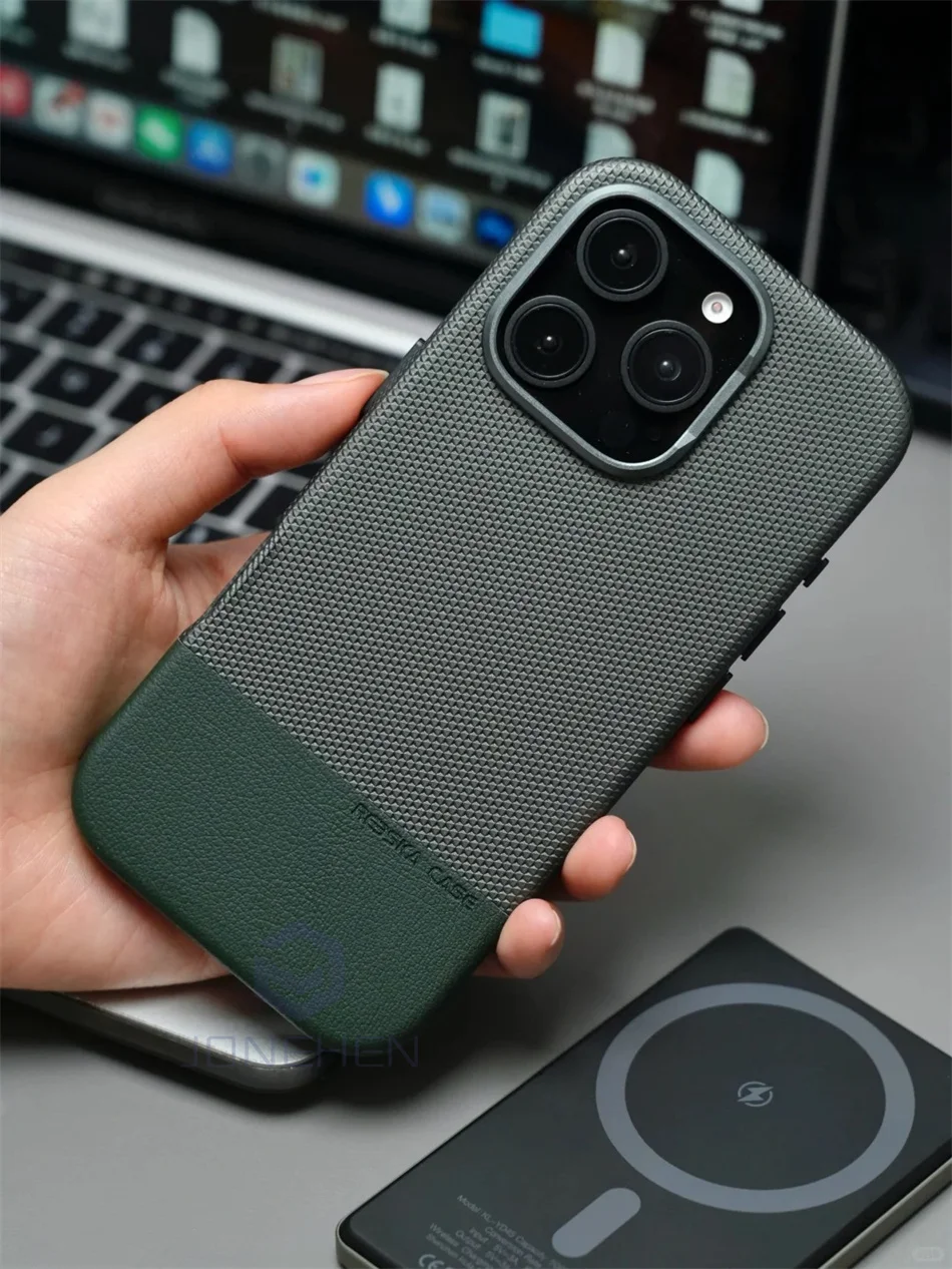 Color: Beige, Material: Neoprene - Business Hit Color Relief Leather Case For iPhone 16 15 14 13 Pro Max For Magsafe Magnetic Wireless Charge Alloy Len Cover Bag