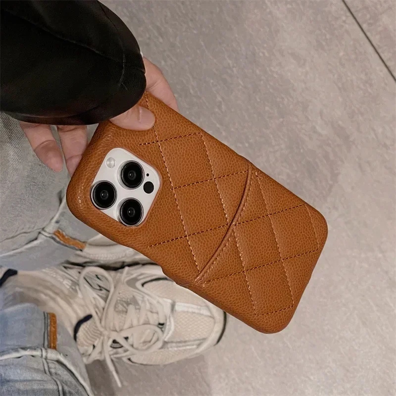 Luxury Lattice Pattern Faux Leather Cover For iPhone 16 15 14 13 Pro Max Credit Card Slot Holder Purse Wallet Shockproof Phone Case