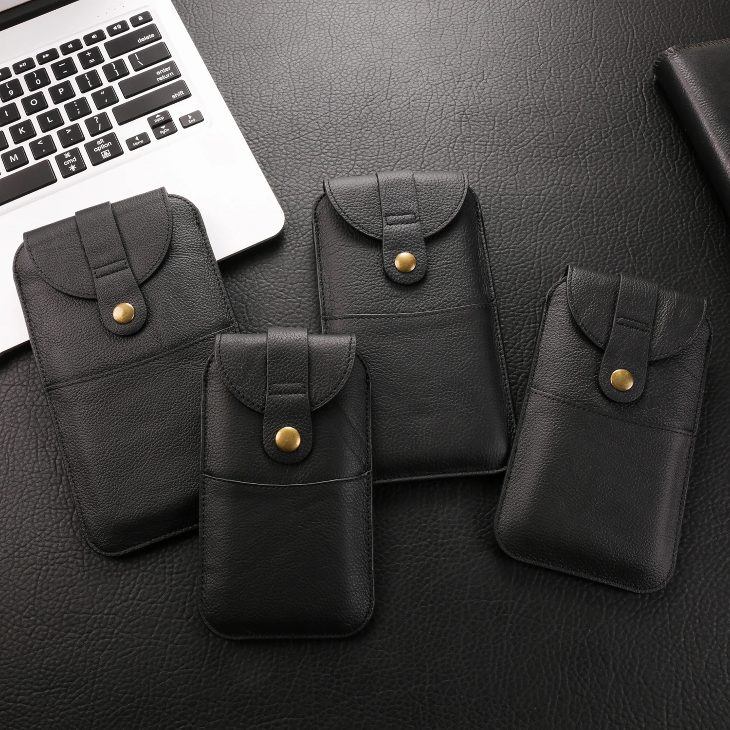 Luxury Slim Card Pocket Genuine Leather Waist Belt Mobile Phone Case Pouch