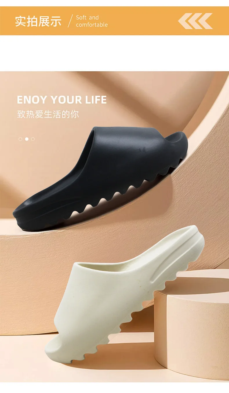 Color: Beige, Shoe Size: 37.5 - Summer Slippers Men Women Indoor Eva High Soft Bottom Sandals Open Toe Trend Slides Light Beach Shoes Slippers Home Size 35-46