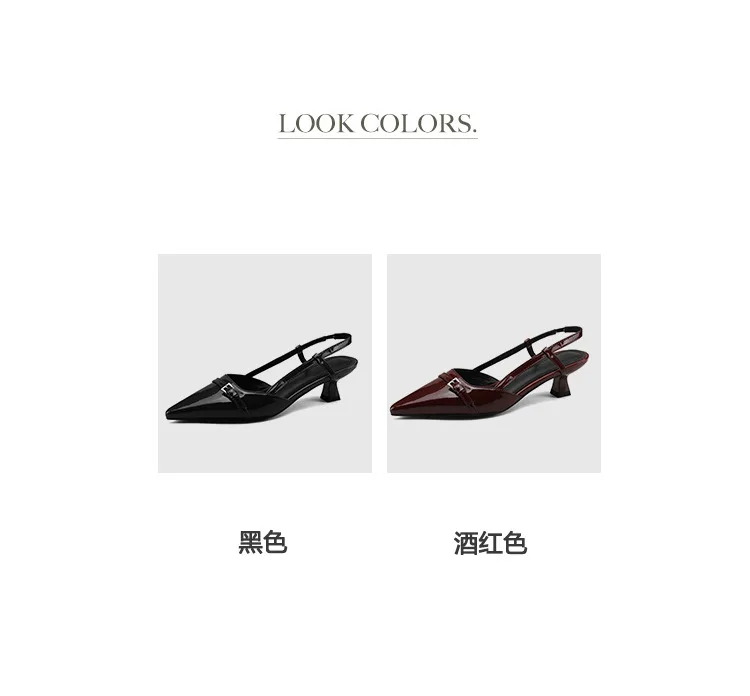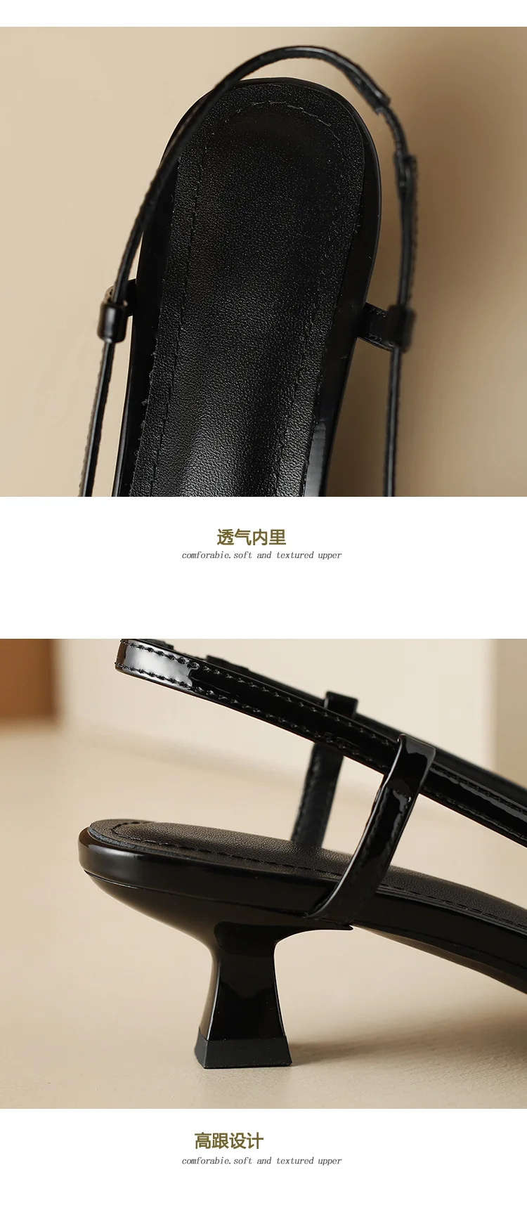 Color: Beige, Shoe Size: 39 - 2024 New Summer Women's Dress Shoes Patent Leather Slip on Pointed Toe Sandals Buckle Slingbacks Mid Heels Pumps Sandalias Mujer