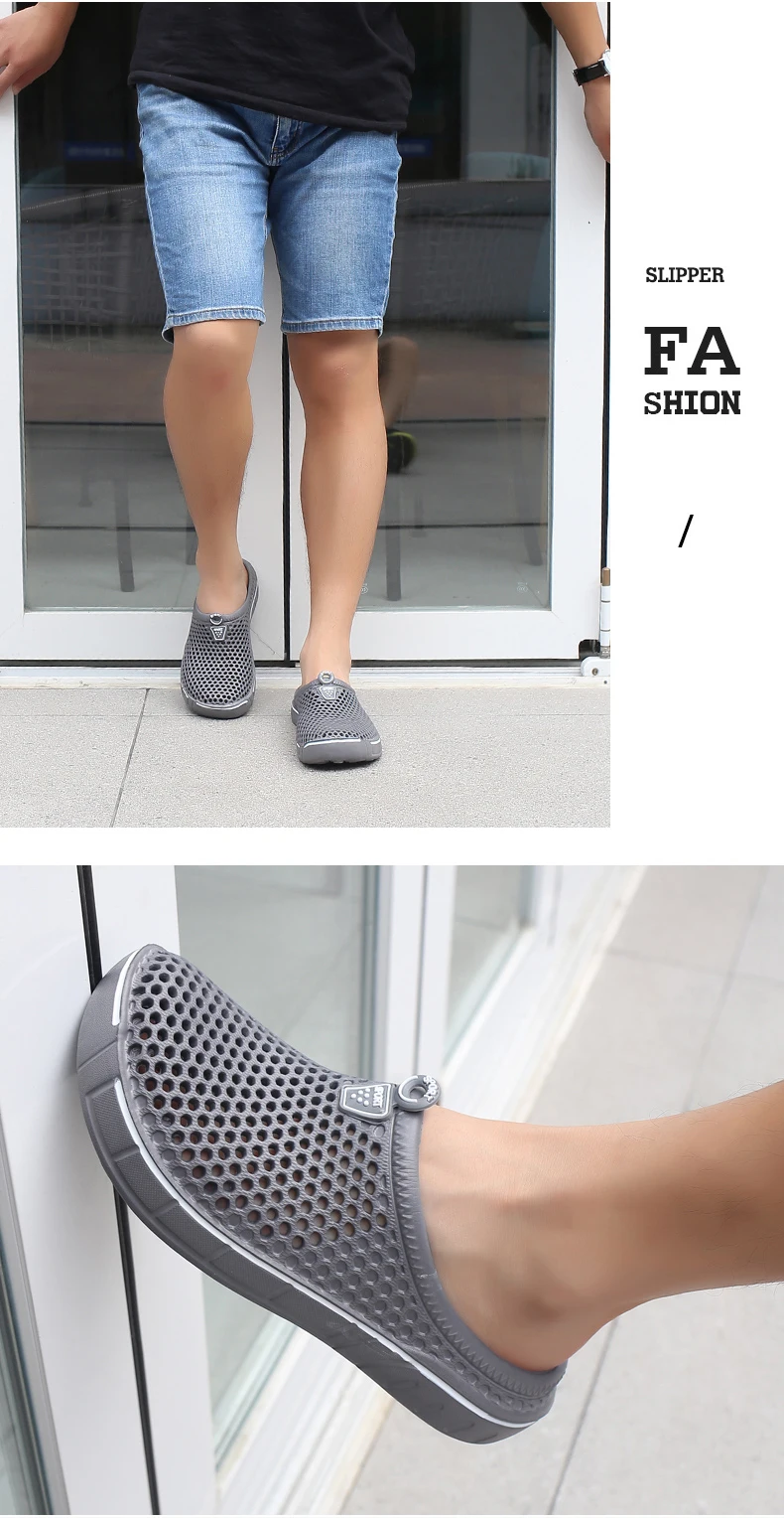 Color: Beige, Shoe Size: 42 - Men Slippers Beach Shoes Unisex Summer Hollow Outdoor Casual Men Beach Sandal Flip Flops Shoes Non-slip Size 36-45 Mens Slippers