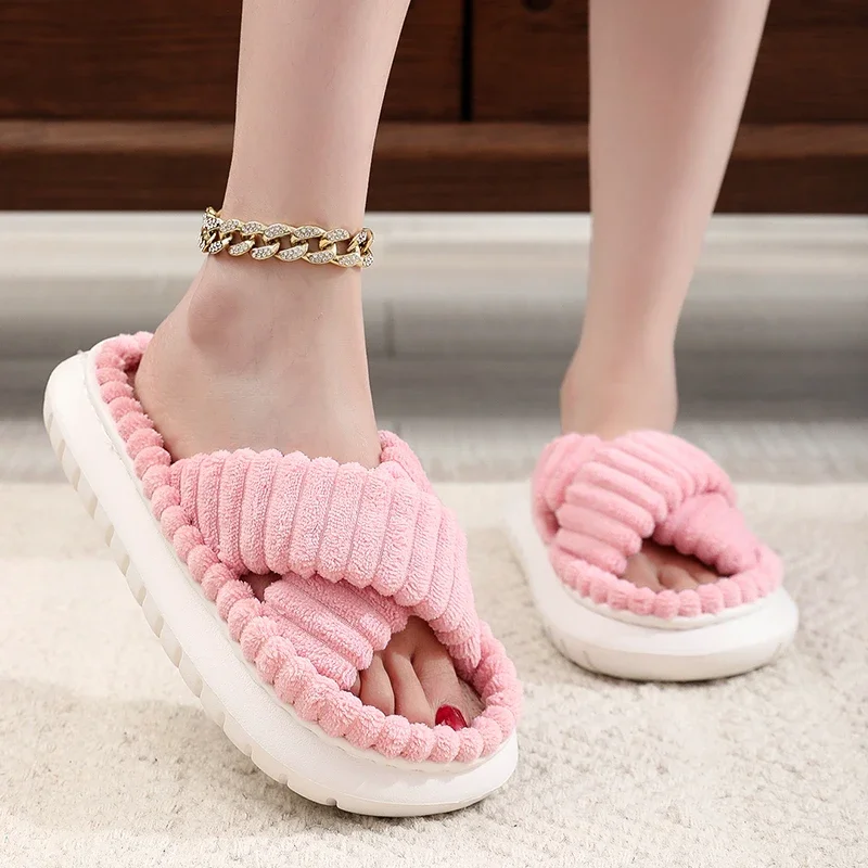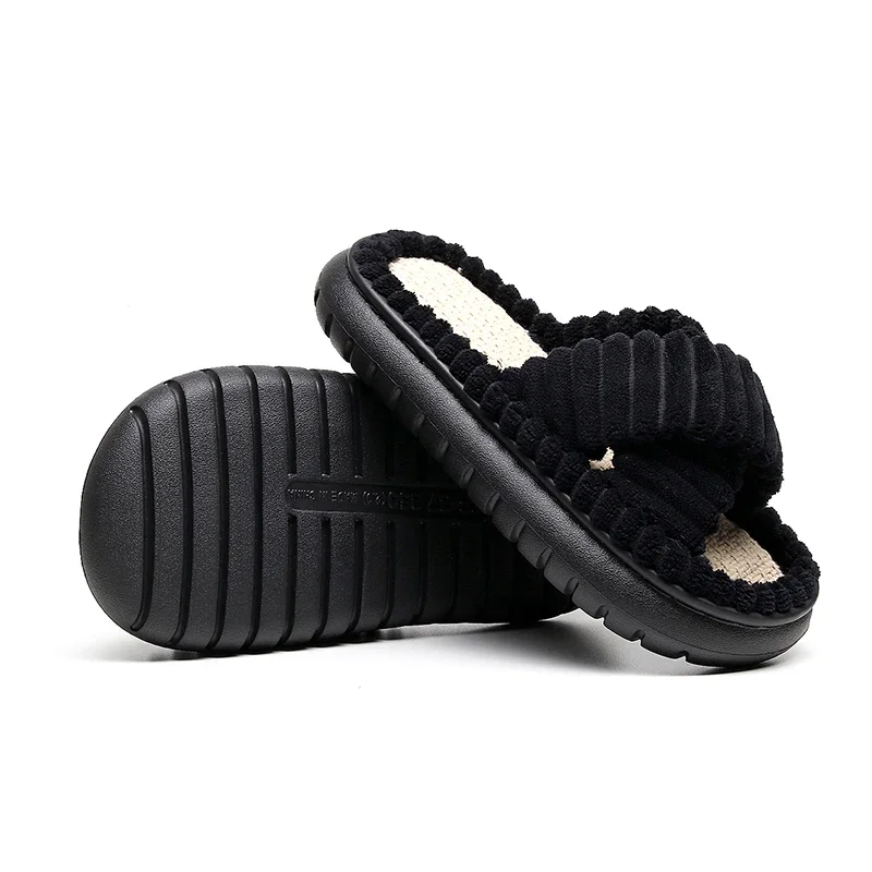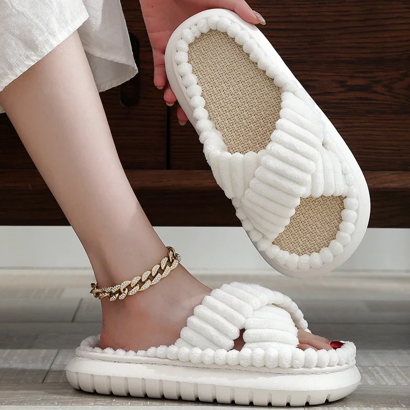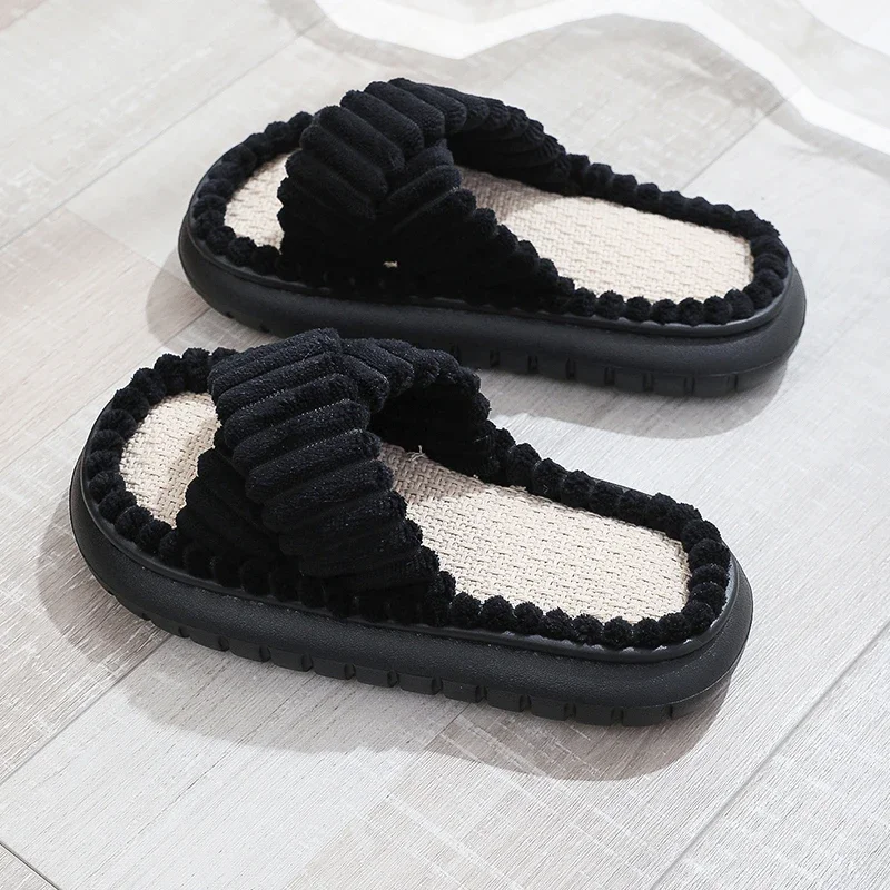 Color: Beige, Shoe Size: 4.5 - 2023 Autumn Winter New Women Home Slippers Open-Toe Cross Band Linen Soled Indoor Slides Linen Soled Non-Slip Bathroom Slippers
