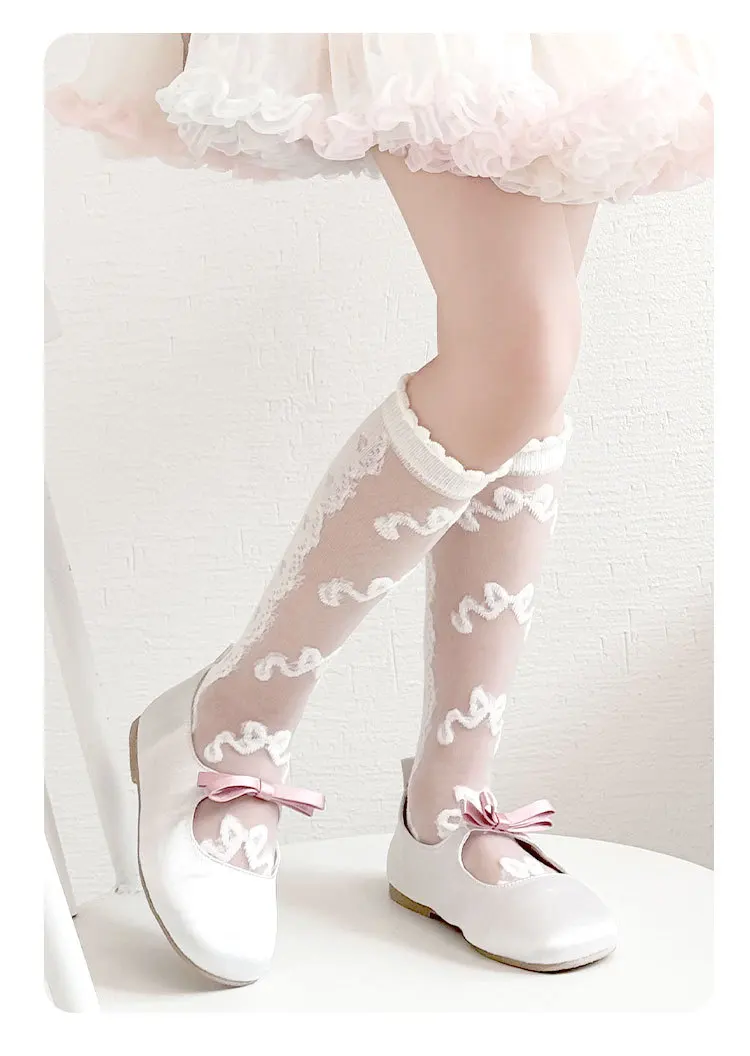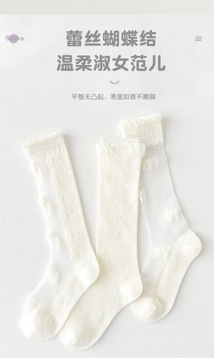 Color: Beige, Size: 10-12T - 3 Pairs/bag Girls Long Socks Summer Thin Mesh Knee Socks 4 Pairs/lot Baby Lace Princess Socks