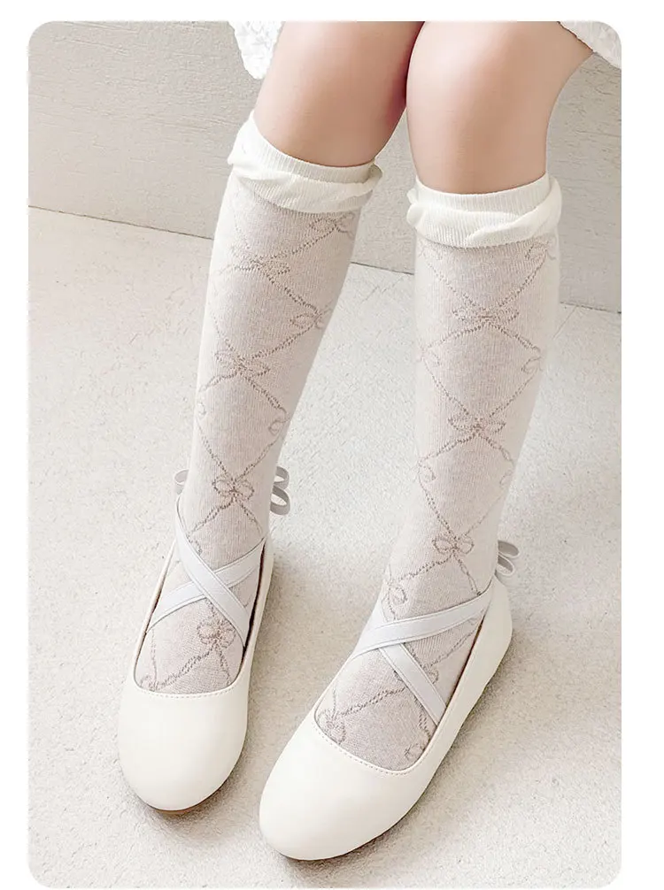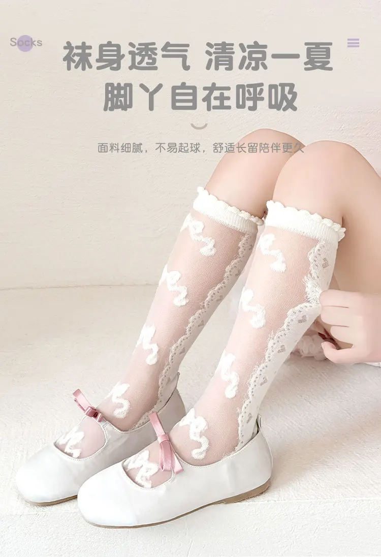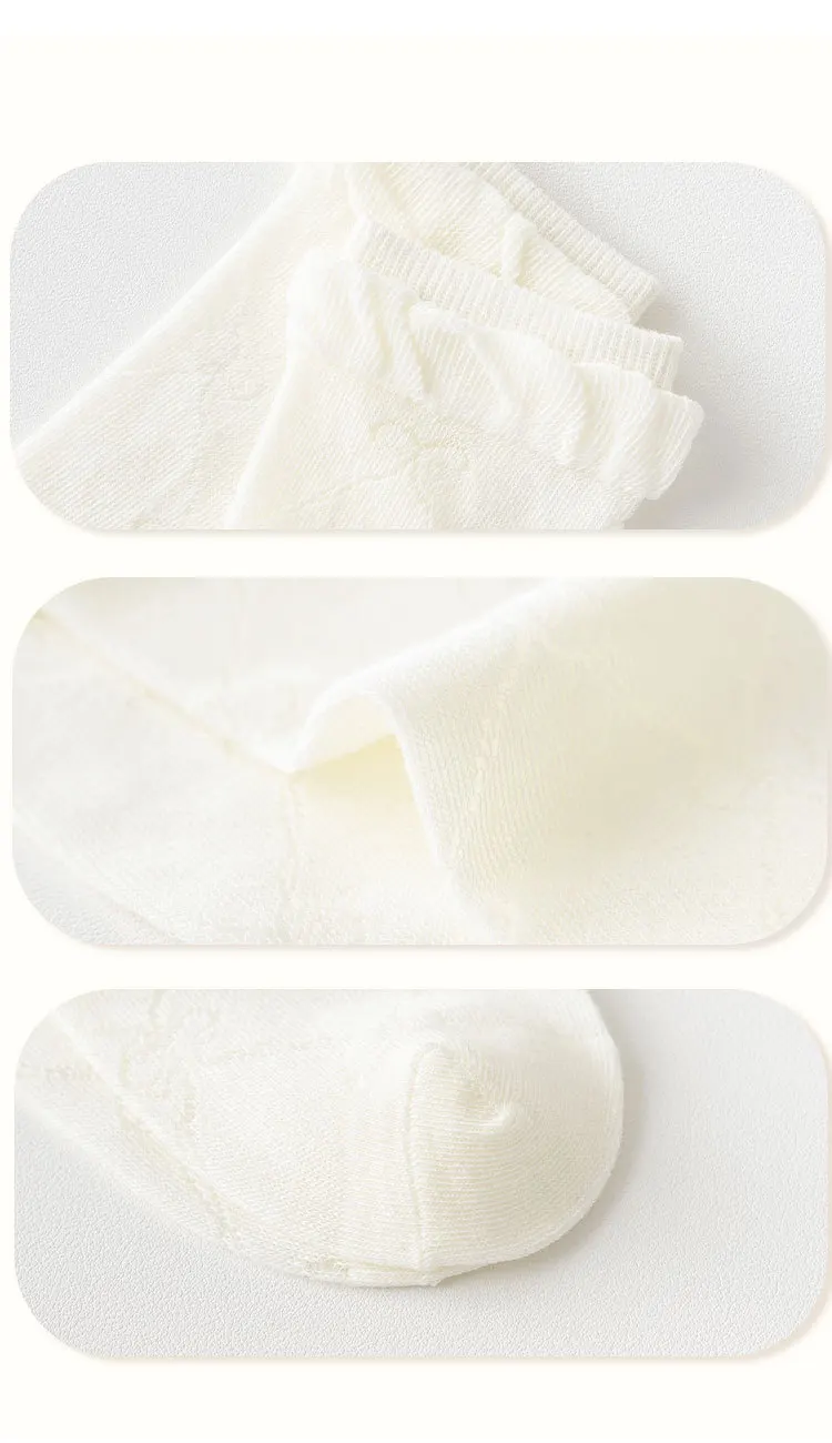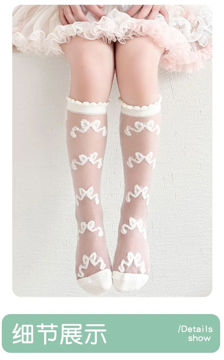 Color: Beige, Size: 7-9T - 3 Pairs/bag Fancy Lace Socks Girls Summer Long Socks Floral Pattern White Socks Knee Sock Summer Thin Cotton Sock