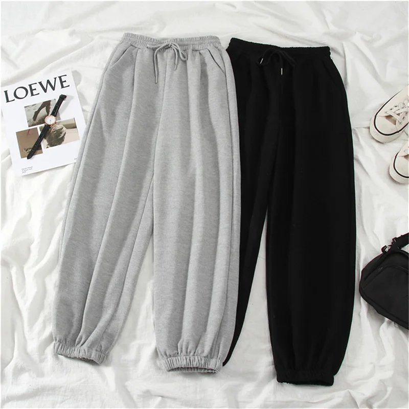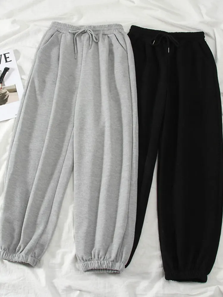 Color: Beige, Size: XL - Gray women Sweatpants Autumn New Baggy Fashion Oversize Sports Pants Black winter thick Joggers Streetwear Trousers