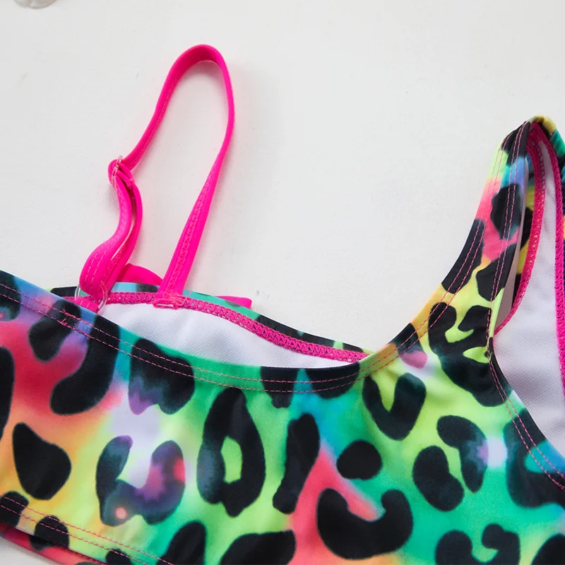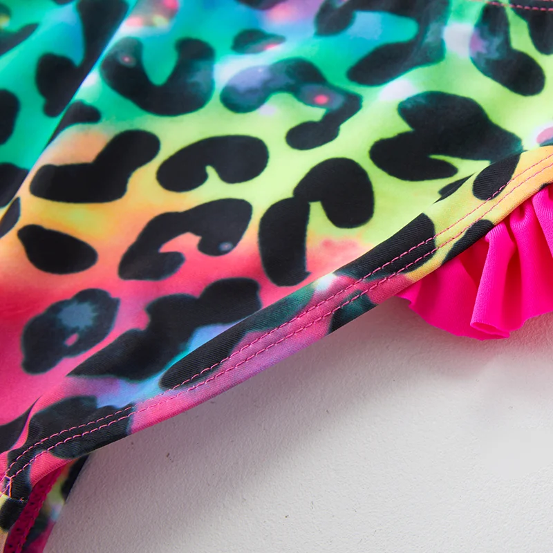 One-piece girls swimsuit, fish scales Designed with a cute ruffle hips.