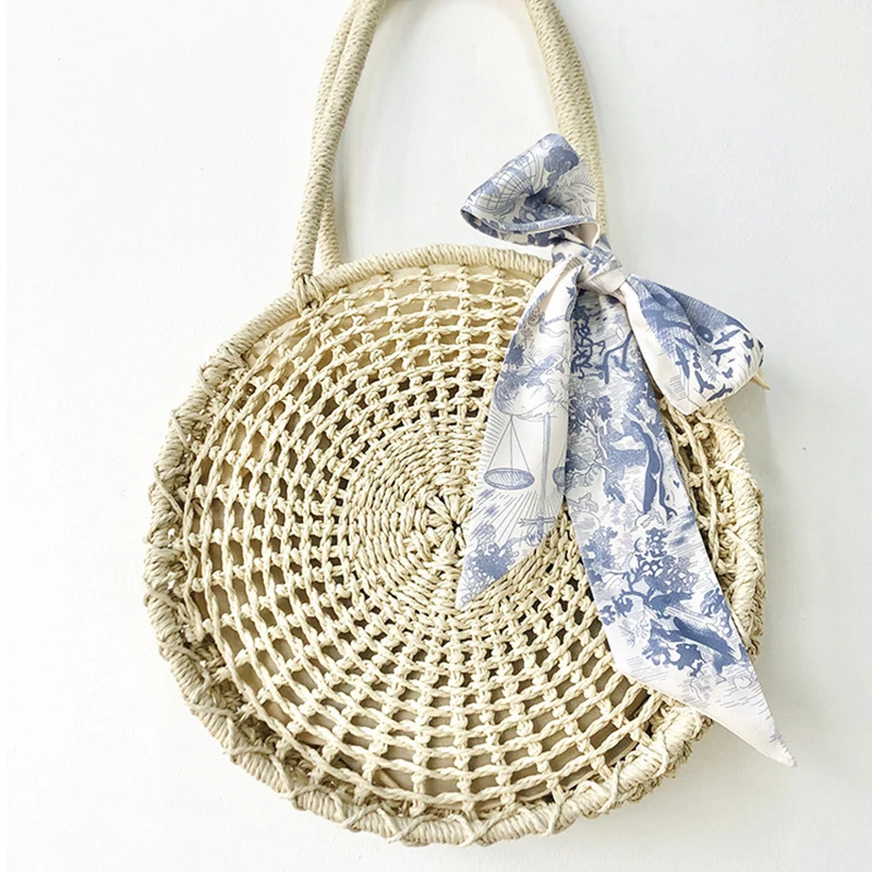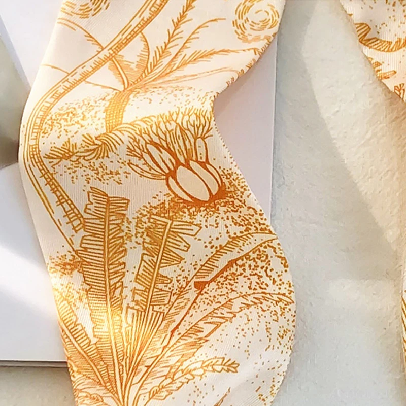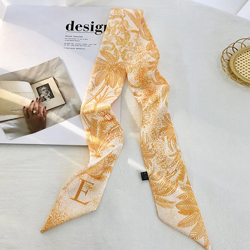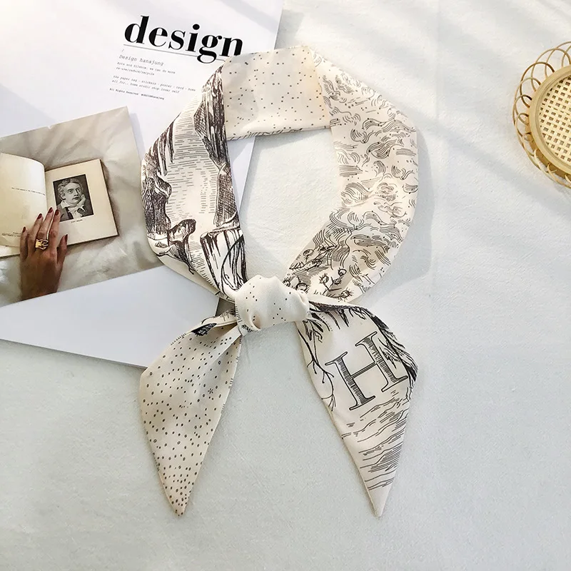 Color: Beige - Sketch Style 26 Letters Temperament Small Scarf Long Silk Scarf Hair Band Narrow Headband Hair Tie Bag Handle Hair Accessories
