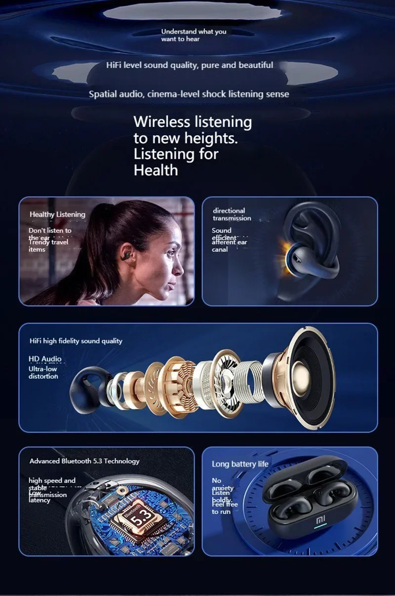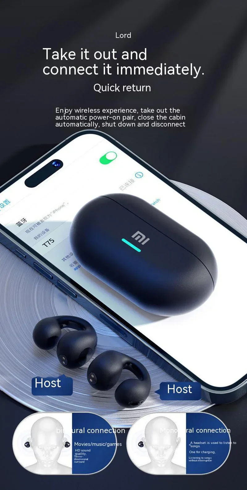 Color: Beige - Xiaomi Original T75 Bone Conduction Bluetooth 5.3 Headphones Sports Wireless Earphones HiFi Sound Quality Waterproof TWS Headset